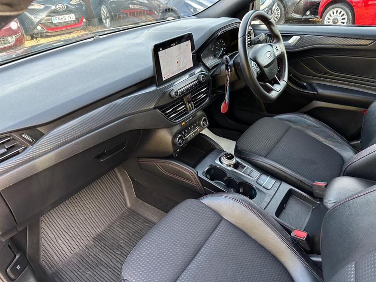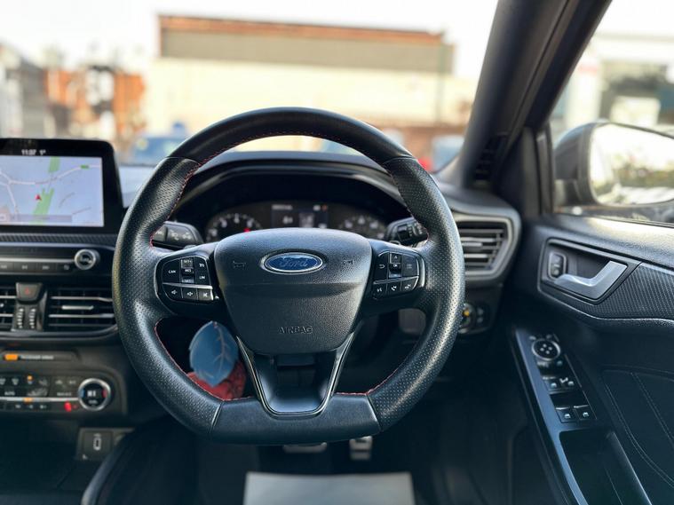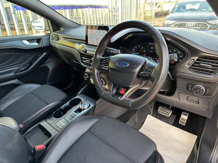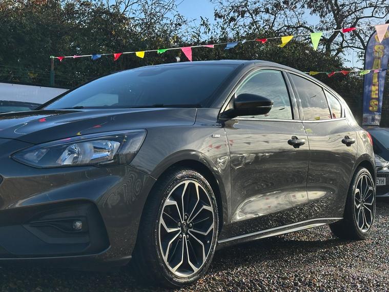 ULTIMATE MOTORS IS DELIGHTED TO OFFER YOU THIS FOCUS 1.0T ECOBOOST ST-LINE 5DR IN GREY COLOUR AND COMPLEMENTED WITH 18IN 10 SPOKE ST LINE MATT BLACK MACHINED BLACK DESIGN ALLOY WHEELS. THIS VEHCILE HAS A HUGE SPECIFCATION WHICH INCLUDES THE FOLLOWING; SATELLITE NAVIGATION SYSTEM, CARPLAY FOR IPHONE AND ANDROUD AUTOS, BLUETOOTH CONNECTIVITY FOR PHONE AND MEDIA, DAB-FM/AM RADIO, ELECTRICALLY ADJUSTABLE DRIVER SEAT, FRONT HEATED SEATS, 8IN TOUCHSCREEN COLOUR DISPLAY, CRUISE CONTROL WITH SPEED LIMITER, DUAL-ZONE ELECTRONIC AUTOMATIC TEMPERATURE CONTROL, ELECTRIC PARKING BRAKE, LANE KEEPING AID WITH LANE DEPARTURE WARNING SYSTEM, KEYLESS START ENGINE GO WITHY START AND STOP PUSH BUTTON, SELECTTABLE DRIVE MODE, HALOGEN HEADLIGHTS WITH LED DAYTIME RUNNING LIGHTS, TYRE PRESSURE WARNING SYSTEM. WE ARE OFFERING NATIONWIDE DELIVERY ON ALL VEHICLE (PLEASE GET IN TOUCH DIRECTLY FOR DETAILS). WE CAN ALSO CONDUCT VIRTUAL VIEWINGS AND ACCOMMODATE ANY REQUESTS YOU MAY HAVE. ALL OUR ADVERTISED STOCK IS TEST-DRIVEN, INSPECTED BY OUR MECHANIC TO MAKE SURE OUR CUSTOMERS DRIVE AWAY WITH THE BEST QUALITY CARS. WE CAN PROVIDE A VIDEO WALK AROUND THIS VEHICLE UPON REQUEST.ALL OF OUR VEHICLES ARE SUPPLIED WITH A 3 MONTHS WARRANTY WITH EXTENDED OPTION. 12 MONTHS FREE AA BREAKDOWN COVER. FINANCE AVAILABLE..