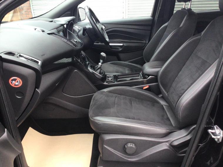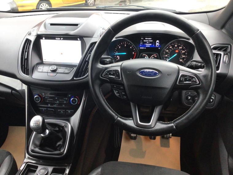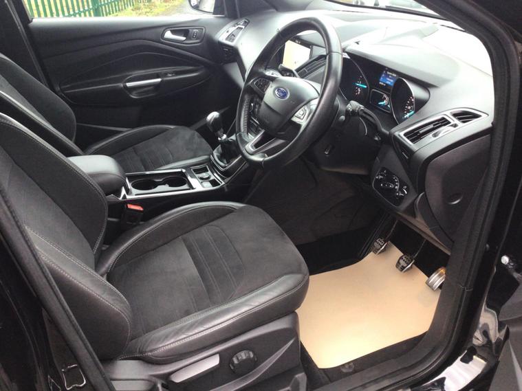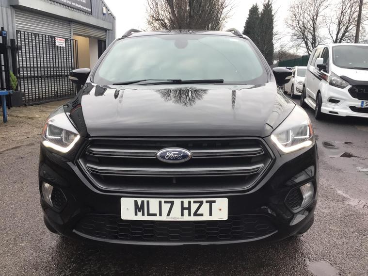 APPLE CARPLAY/ANDROID AUTO * TOUCHSCREEN SAT NAV * VOICE RECOGNITION * HALF BLACK LEATHER INTERIOR * FRONT & REAR PARKING SENSORS * AUTO PARALLEL PARK * 19'' BLACK ALLOYS * * PART EXCHANGE WELCOME - WE OFFER MORE THAN WEBUYANYCAR & MOTORWAY! * LOW RATE FINANCE AVAILABLE * * JUST ARRIVED IS THIS STUNNING 2017 FORD KUGA 1.5 TDCi ST-LINE WITH JUST 1 FORMER OWNER & FULL SERVICE HISTORY (8 services). IT COMES WITH MOT TILL NOVEMBER 2026 (No advisories), FULLY CLEAR HPI CERTIFICATE, 2 KEYS & 12 MONTHS FREE AA BREAKDOWN COVER! OTHER EXTRAS INCLUDE; Air con/Dual zone climate control, Alarm/Immobiliser, Auto lights, Bluetooth, Child locks, Cruise control, Cup holders, Electric power-folding mirrors, Electric windows x 4, Electronic parking brake, Foglamps, Front & rear armrests, Half leather sport seats, Hill Start Assist, Isofix, Keyless starting, Leather multi-function steering wheel, Lumbar support, Quickclear heated windscreen, Rain sensor, Remote locking, Roof rails, 6 Speed gearbox, Sports suspension, Stop/Start, Tinted rear windows, Touchscreen multimedia system with DAB radio & CD/USB input, Traction control, Trip computer, Tyre Pressure Monitoring System. IN EXCELLENT CONDITION INSIDE & OUT, RUNS & DRIVES SUPERB. HAS BEEN VERY WELL LOOKED AFTER, ANY INSPECTION/TEST DRIVE WELCOME. PART EXCHANGE WELCOME - WE OFFER MORE THAN WEBUYANYCAR & MOTORWAY! WE CAN SAVE YOU HASSLE & ARRANGE LOW RATE SAME DAY DRIVEAWAY FINANCE FOR YOU * * PLEASE NOTE - THE CHEAPEST WAY TO PURCHASE THIS CAR IS THROUGH US DIRECTLY. PLEASE CALL. THE INVOLVEMENT OF ANY 3RD PARTY FINANCE COMPANY WILL LIKELY INCUR ADDITIONAL ADMIN FEES * * WARRANTY INCLUDED, FREE DELIVERY AVAILABLE (T's & C's APPLY)..