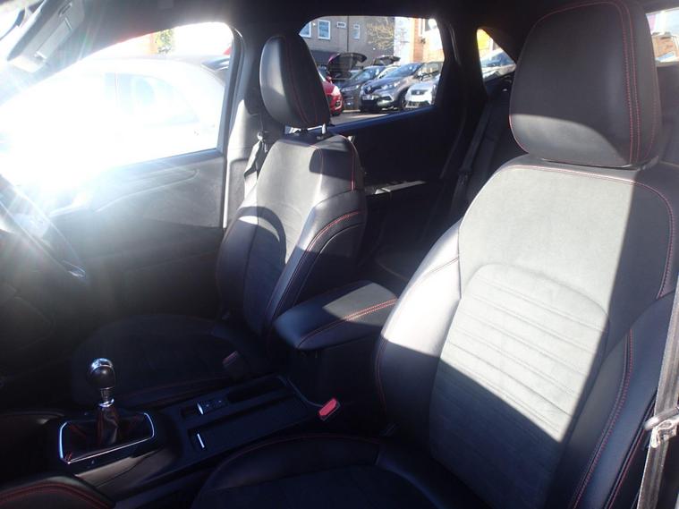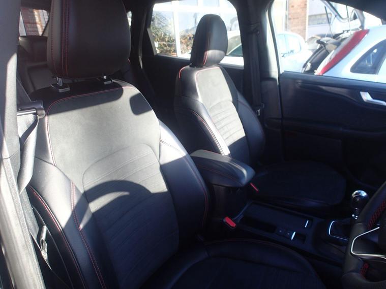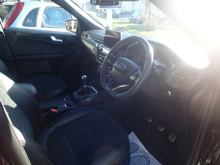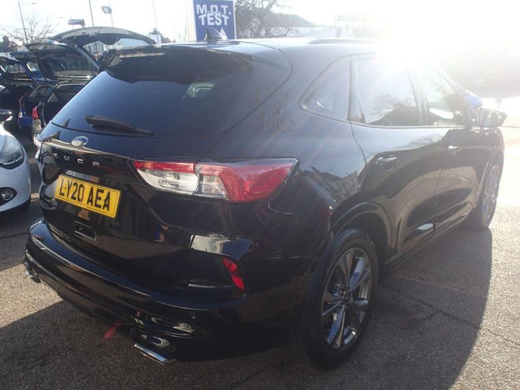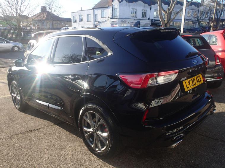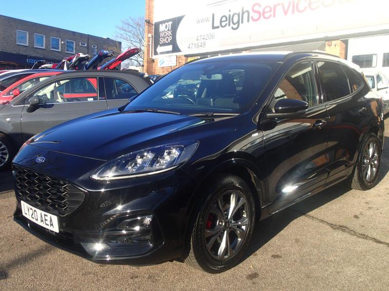 This 2020 Ford Kuga T ST Line is presented with a clear vehicle history check, offering peace of mind for its next owner. This stylish SUV is equipped with a 1.5 litre petrol engine and meets Euro 6 emissions standards. Inside, you'll find the Ford SYNC 3 Navigation System, complete with Android Auto, Apple CarPlay, and Bluetooth connectivity for seamless integration of your devices. The convenience continues with automatic headlights that switch on and off as needed, and the Ford Key Free System, allowing for keyless entry and keyless start.Further enhancing your driving experience, this Kuga features DEATC dual-zone electronic automatic climate control, ensuring comfort for both driver and passengers. Navigating tight spaces is made easier with front and rear parking sensors. This particular model also benefits from a low insurance group, indicating that running costs could be more affordable compared to similar vehicles..