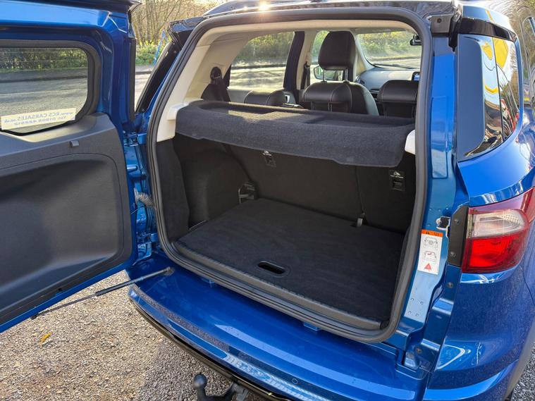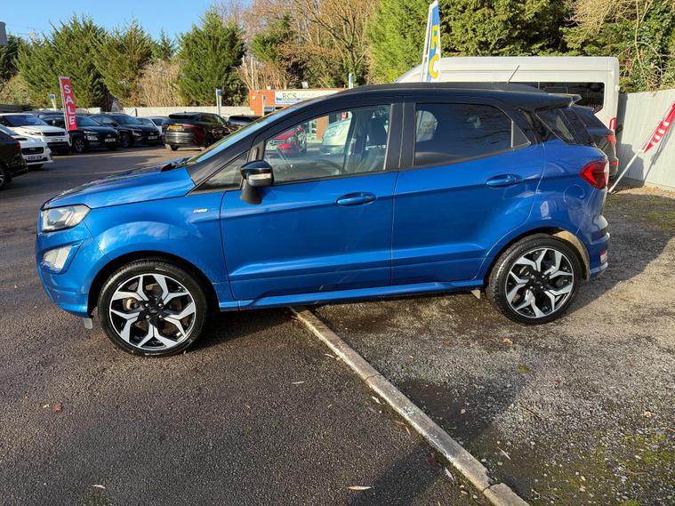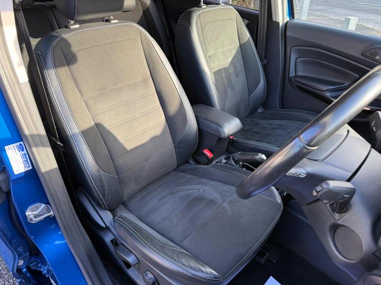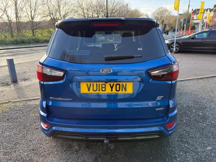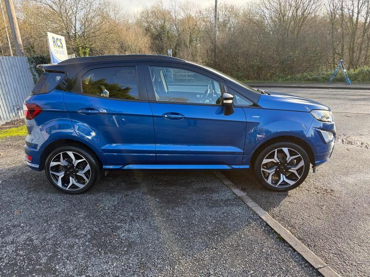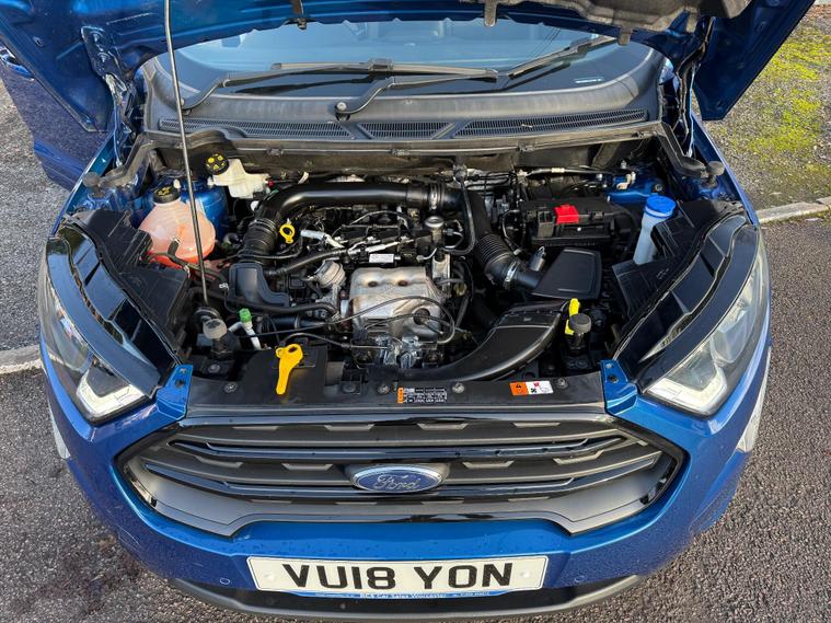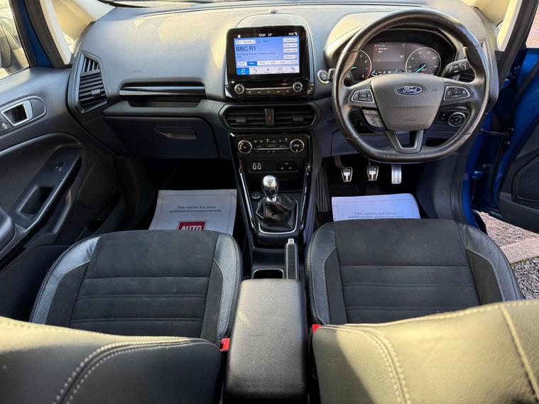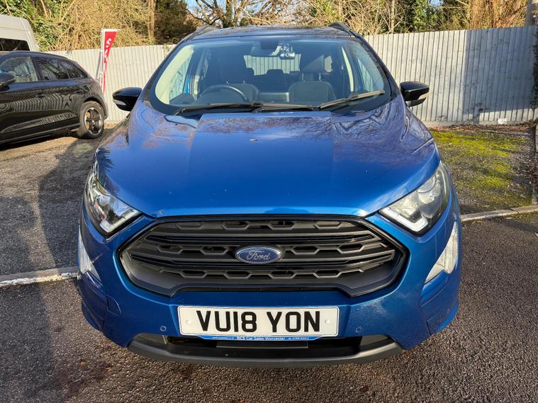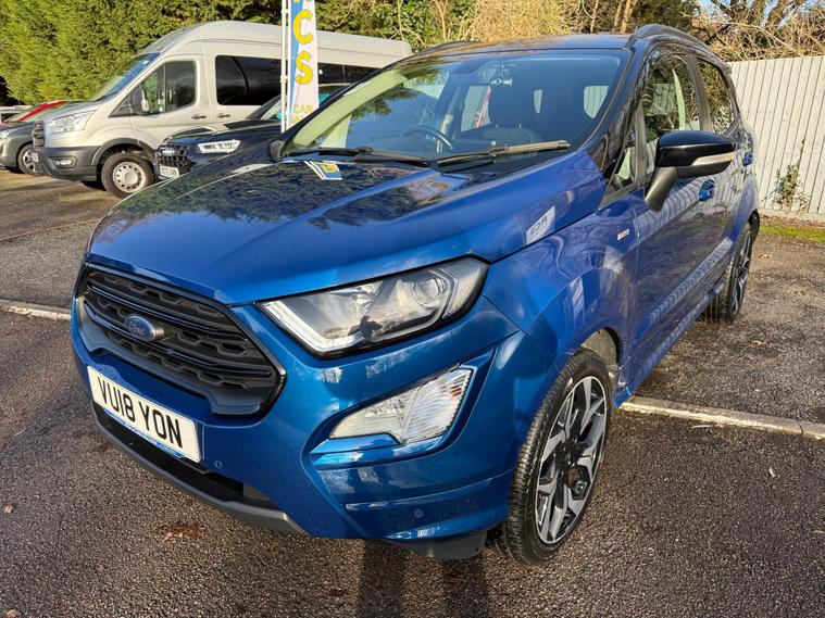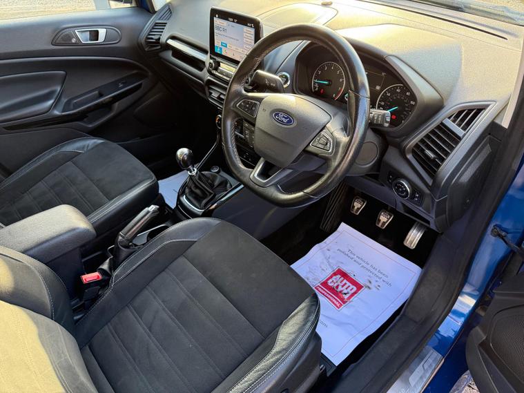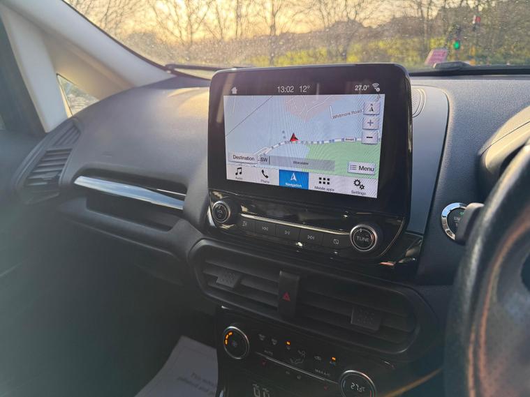 This 2018 Ford EcoSport ST-Line boasts a full dealership service history, with its last service completed on 1st December 2025 at 48, 553 miles, offering excellent provenance. This stylish compact SUV is powered by an efficient 1.0L petrol engine and meets Euro 6 emissions standards. It comes equipped with desirable features such as Ford Keyless Entry and Start, a rear view camera with rear parking sensors for effortless parking, and Electronic Automatic Temperature Control for a comfortable cabin environment. The Ford DAB Navigation System with Ford SYNC3, compatible with Android Auto and Apple CarPlay, ensures you stay connected and on course, all complemented by striking 18in Shadow Black Machined Finish alloy wheels.The Ford EcoSport ST-Line offers a compelling package, highlighted by its impressive fuel economy of 53 mpg, demonstrating its efficiency compared to similar vehicles. Its low CO2 emissions further contribute to its economical running costs. This particular model provides a well maintained and feature rich driving experience, making it a practical and appealing choice for those seeking a versatile and modern compact SUV..