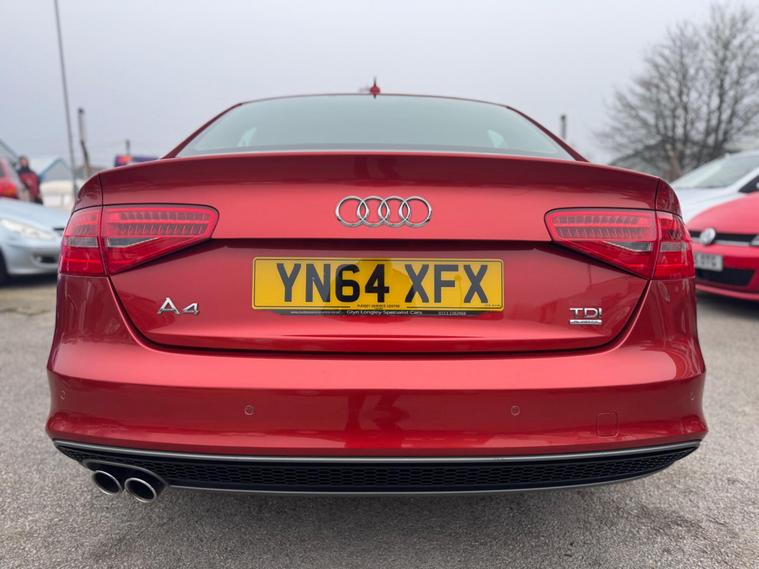 dealer's website ESTABLISHED 1991 FOR MORE QUALITY GERMAN AUTOMOBILES AT AFFORDABLE PRICES.FULL DOCUMENTED SERVICE HISTORY WITH PRINT OUT AND RECEIPTS STUNNING LOW MILEAGE EXAMPLEThis Audi A4 TDI Black Edition from 2014 presents an exceptional find with its remarkably low mileage of just 65, 000 miles, especially considering its age, and a history of only two owners. This four wheel drive model is powered by an efficient 2.0 litre diesel engine and boasts a clear vehicle history check. Inside, you'll appreciate the convenience of electronic three zone climate control, ensuring comfort for all occupants, and the Audi Parking System Plus, which includes front and rear sensors to aid manoeuvring. Stay connected on the go with the Bluetooth interface for mobile telephone preparation, and enjoy an enhanced audio experience thanks to the premium Bang and Olufsen sound system.The Black Edition trim adds a touch of sophisticated styling to this already desirable Audi A4. Its low insurance group rating is a significant advantage, making it an economical choice for many drivers. The combination of its low mileage, limited ownership, and desirable features like the advanced parking assistance and superior sound system clearly sets this vehicle apart from others you might find. This A4 offers a compelling blend of performance, comfort, and technology, all wrapped in a stylish package..