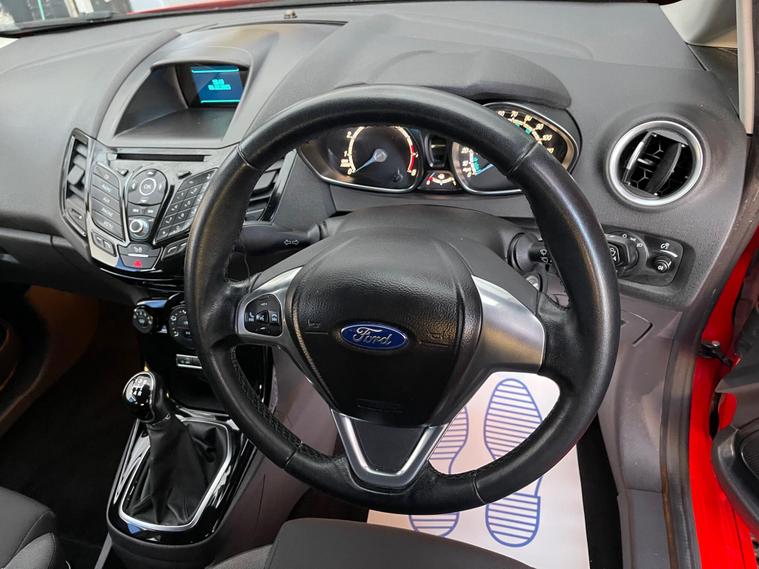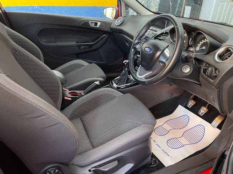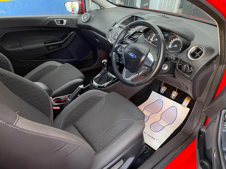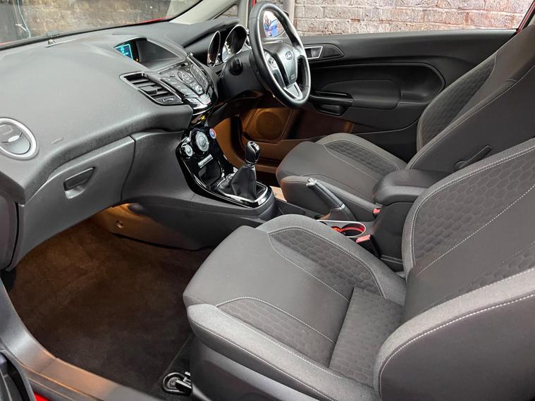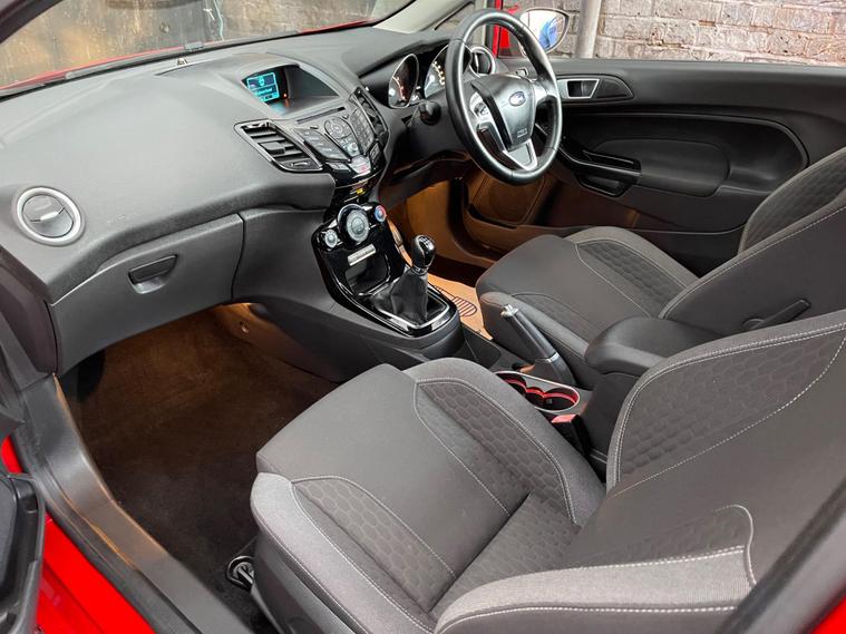 , , , 2 OWNERS FROM NEW, , , , , FULL SERVICE HISTORY, , , ( every single invoice in folder ), , , , , , , VERY VERY CLEAN CAR, , , , This 2015 Ford Fiesta Zetec S is a superb example, having been owned by only two previous keepers. This popular hatchback boasts a 1.0 litre petrol engine and meets the Euro 6 emission standards, contributing to its impressive fuel economy of up to 66 miles per gallon. Inside, you'll find manual air conditioning to keep you comfortable and Bluetooth hands free phone connectivity for safe and easy communication on the go.The performance of this Fiesta is also noteworthy, with a brisk 0 to 62 miles per hour acceleration time of just 9.4 seconds. Its low CO2 emissions further highlight its efficiency, making it a more economical choice compared to many other vehicles in its class. This combination of low running costs, enjoyable driving dynamics, and practical features makes this Ford Fiesta Zetec S a compelling option..