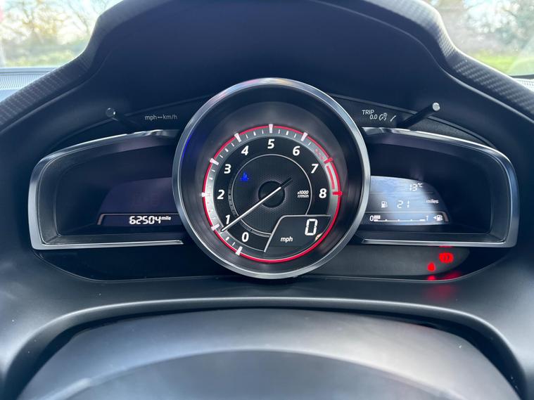 This 2015 Mazda3 SKYACTIV G Sport Nav presents a compelling proposition with its remarkably low mileage of just 62, 000 miles and a history of only two owners. This particular Mazda3, a Sport Nav variant, is equipped with a responsive 2.0 litre petrol engine and meets the Euro 6 emission standards. Inside, you'll find luxurious black leather upholstery, heated front seats for added comfort, and a sophisticated Head Up Display that keeps essential information in your line of sight. The premium BOSE Centrepoint Surround System, featuring nine speakers, promises an exceptional audio experience.Further enhancing this Mazda3's appeal is its comprehensive Safety Pack, which includes Blind Spot Assistance and LED headlights for improved visibility and awareness. This model also boasts a generous boot space, making it practical for everyday use and longer journeys. Its acceleration is noteworthy, achieving 0-62mph in just 8.9 seconds, demonstrating a pleasing blend of performance and efficiency. The low insurance group rating further indicates that this Mazda3 offers excellent value, making it a smart choice compared to many other vehicles in its class..