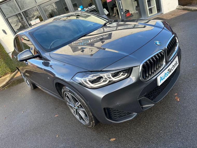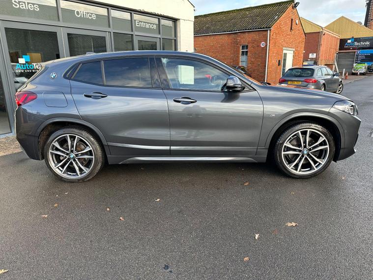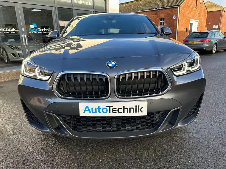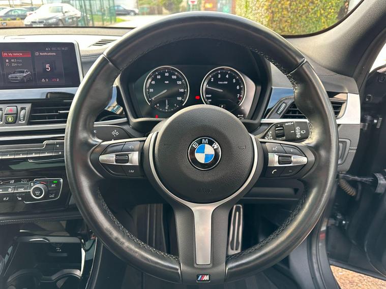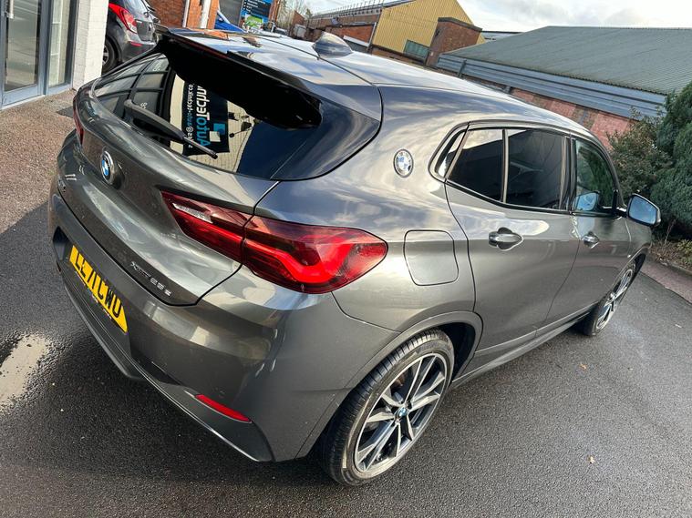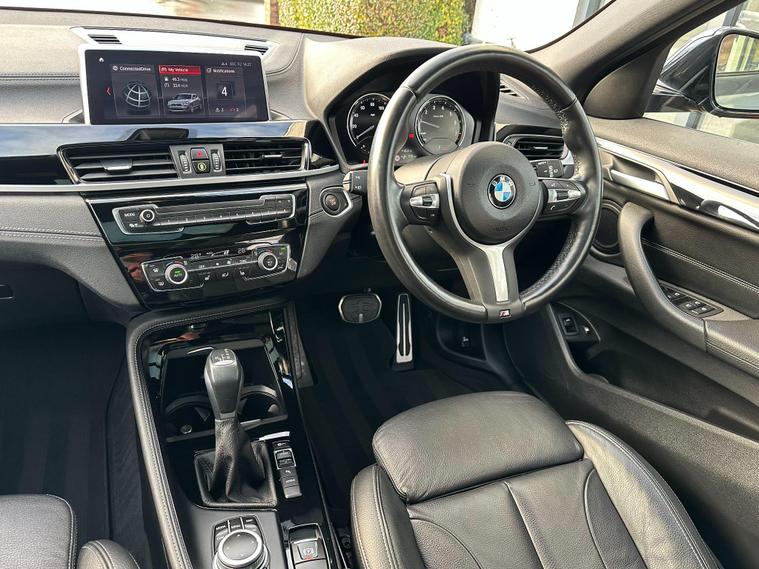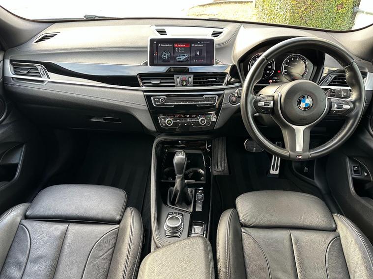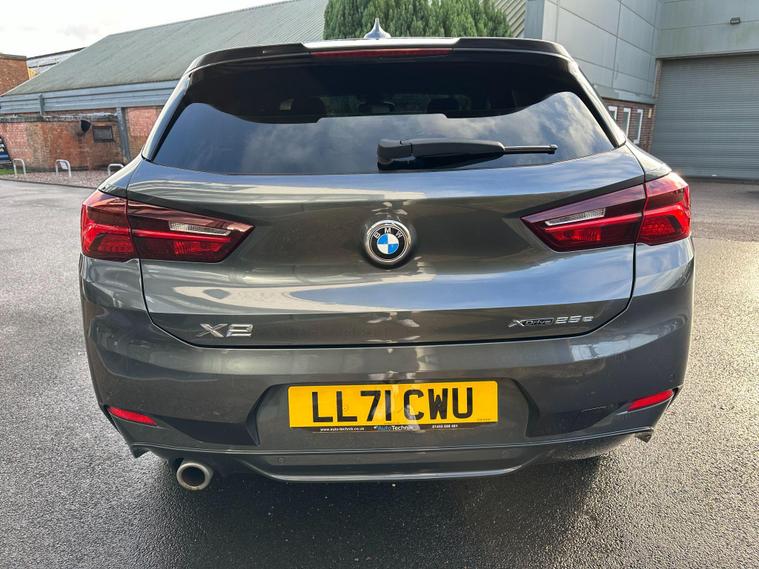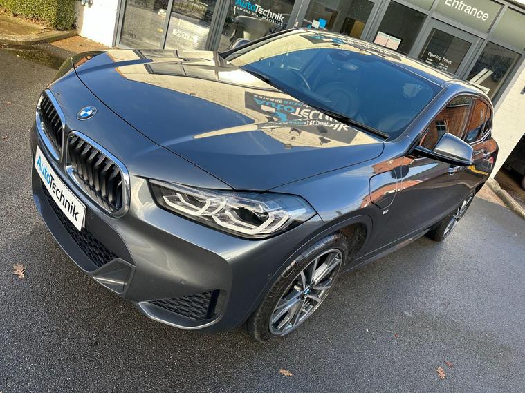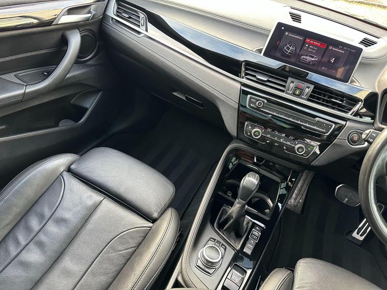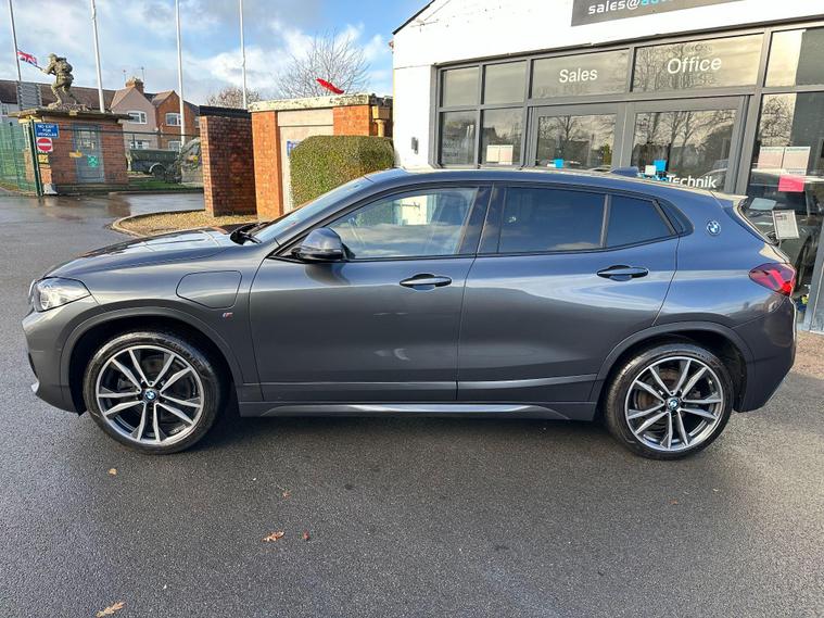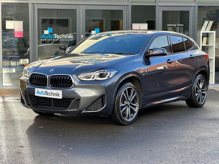 This 2021 BMW X2 25e M Sport offers exceptional value with its remarkably low mileage of just 30392 miles for its age. This four wheel drive plug in hybrid model boasts a 1.5 litre petrol engine and meets Euro 6 emissions standards. It comes equipped with the M Sport trim and a Technology Pack I, which includes Bluetooth connectivity, LED headlights, a rear camera for parking assistance, and wireless phone charging. Further enhancing its appeal are a panoramic glass sunroof with an opening function, perforated Dakota leather upholstery in black with blue stitching, and front and rear Park Distance Control sensors. Seamless integration with your smartphone is provided by Apple CarPlay.The inclusion of features like the panoramic sunroof and the advanced parking assistance systems, including front and rear sensors and a rear camera, demonstrate a higher level of specification compared to many similar vehicles. The M Sport trim further elevates the driving experience with its sporty design elements and dynamic handling. This BMW X2 is a well appointed and efficient choice for those seeking a premium compact SUV..