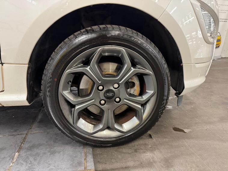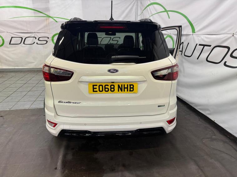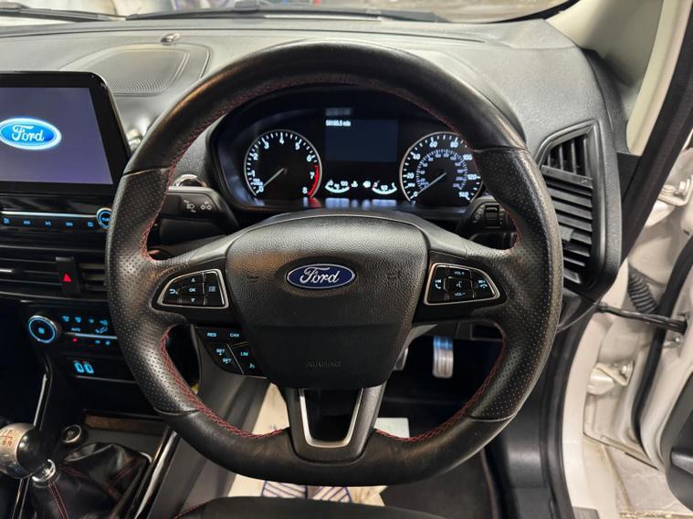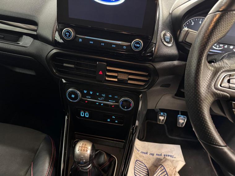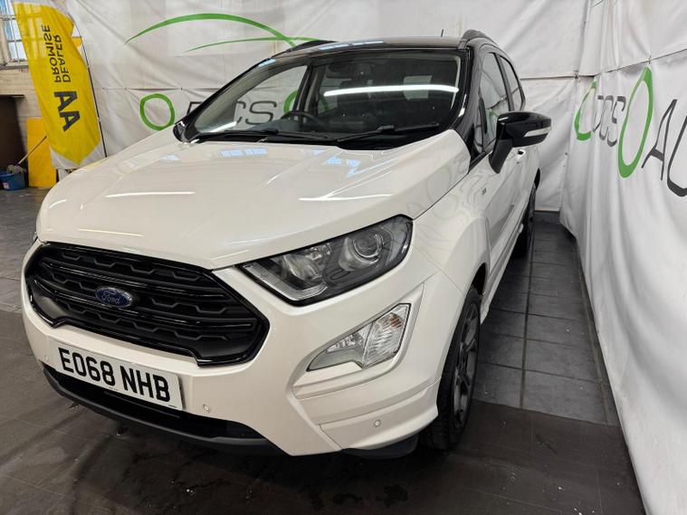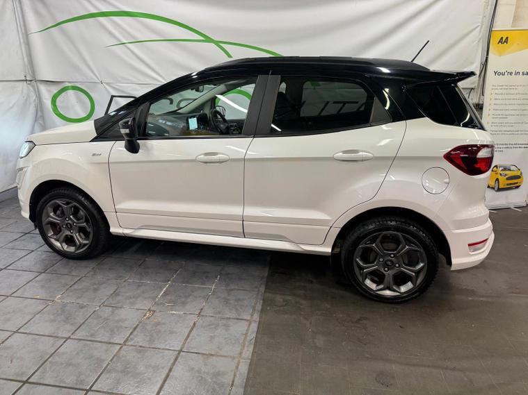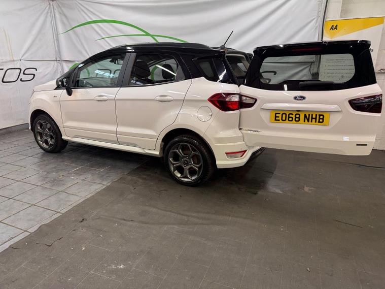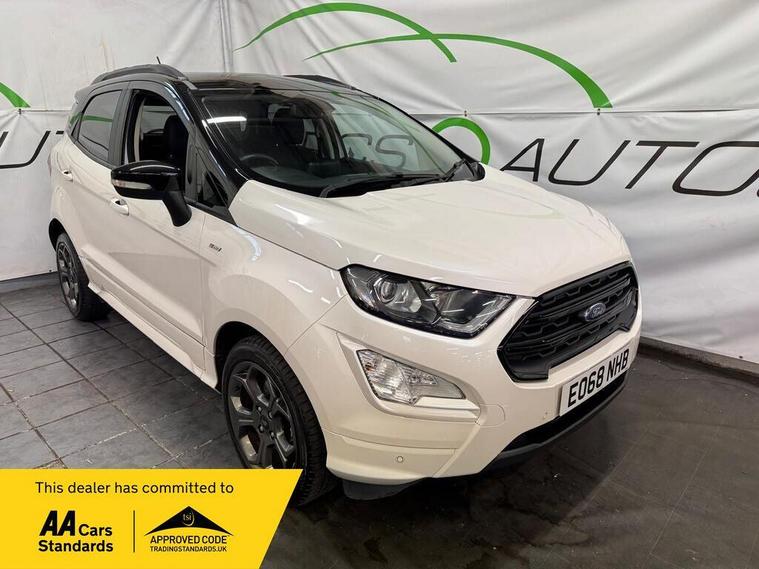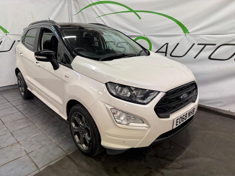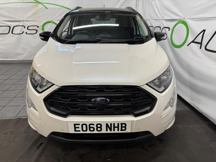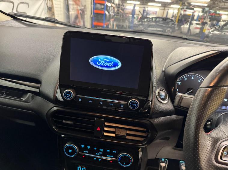 Discover this 2018 Ford EcoSport T ST-Line, a stylish and practical compact SUV. This Euro 6 compliant model boasts a responsive 1.0L petrol engine, offering an impressive fuel economy of up to 53 miles per gallon. Inside, you'll find the Ford DAB Navigation System with Ford SYNC3, seamlessly integrating Android Auto and Apple CarPlay for your convenience, alongside Bluetooth connectivity. Comfort is assured with Electronic Automatic Temperature Control, providing climate control for all journeys.This Ford EcoSport ST-Line also features a Rear View Camera with Rear Parking Sensors, making parking manoeuvres easier and safer. The centre console includes a sliding armrest for added comfort, and the rear seats offer a versatile 60-40 split fold and tumble function. With its low CO2 emissions, this vehicle represents an efficient choice compared to similar models, combining modern technology with everyday usability..
