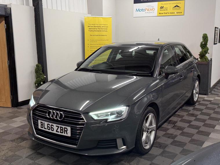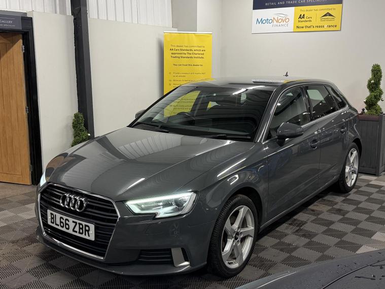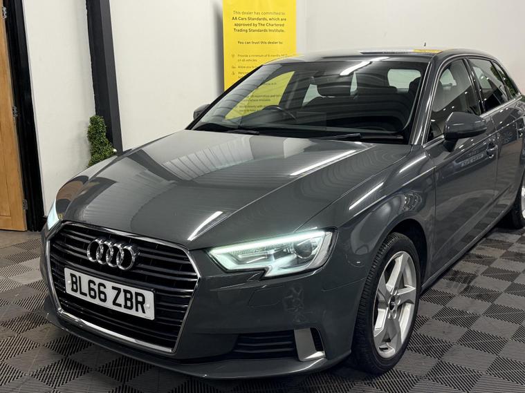 2016 Audi A3 1.4 TFSI CoD Sport Sportback Euro 6 (s/s) 5dr, finished in Nano Grey Metallic. This well-presented example has had 3 former keepers and is supplied with the full V5 logbook and two keys. It benefits from a good service history with five services in total, a mix of Audi main dealer and independent, with the most recent full service carried out on 12/08/2025. As part of our preparation process, a brand-new MOT will also be completed prior to sale. The Sport specification offers a high level of comfort and technology, including alloy wheels, sports seats, dual-zone climate control, Audi MMI infotainment system with Bluetooth connectivity, cruise control, automatic headlights, LED daytime running lights, electrically adjustable and heated door mirrors, multifunction steering wheel, ISOFIX child seat points and remote central locking. The 1.4 TFSI engine with Cylinder on Demand provides an excellent balance of performance and efficiency.A 3-month comprehensive warranty is included, with the option to extend for up to two years. Part exchange is welcome for any value, and our Buying Department can provide prompt and competitive valuations. Nationwide delivery is available at an additional cost upon request, and you can reserve this vehicle today with a £250 fully refundable deposit. We have over 150 vehicles in stock to choose from and, established in 2021, we pride ourselves on our excellent reviews and customer service. All retail vehicles are fully health-checked and prepared to the highest standard. As an AA Approved Dealer with Trading Standards endorsement, every vehicle comes with 12 months FREE AA roadside breakdown and recovery. We are regulated and authorised by the Financial Conduct Authority under FRN: 1014981..