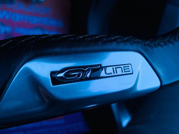 - Mistral Full-Grain Perforated Leather Steering Wheel with Aikinite Stitch Detail and Satin Chrome GT Line Emblem