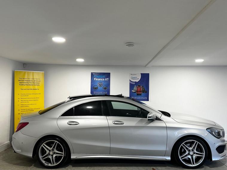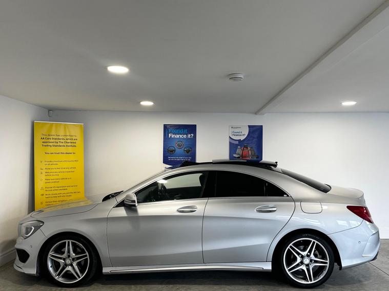 WE ARE PLEASED TO OFFER THIS 2014 / 64 REG ( FACELIFT MODEL ) MERCEDES-BENZ CLA250 AMG SPORT COUPE 7G-DCT EURO 6 - PRESENTED IN STUNNING SILVER WITH CONTRASTING LEATHER AMG SPORTS INTERIOR A COMPLETE FRESH ENGINE SERVICE HAS BEEN CARRIED OUT WHICH INCLUDED ENGINE OIL / OIL FILTER / CABIN FILTER AND THE AIR FILTER + SUPPORTED BY A SERVICE HISTORY AND 2 ORIGINAL KEYS + HUGE SPECIFICATION INCLUDES: ULEZ COMPLIANT + ELECTRIC SLIDING PANORAMIC GLASS SUNROOF + REVERSE PARK CAMERA + KEYLESS ENTRY + AUTOMATIC XENON HEADLIGHTS + MERCEDES -BENZ INTELLIGENT LIGHTING SYSTEM + LED DAYTIME RUNNING LIGHTS + ADAPTIVE CRUISE CONTROL / DISTRONIC + ANTI-COLLISION ASSIST + BLIND SPOT ASSIST + ELECTRIC FOLDING / HEATED DOOR MIRRORS WITH MEMORY + ELECTRICALLY ADJUSTABLE HEATED MEMORY SEATS + ADJUSTABLE MULTI FUNCTION FLAT BOTTOM LEATHER STEERING WHEEL + CRUISE CONTROL WITH SPEED LIMITER + SPORTS PADDLE SHIFT GEARBOX + DUAL CLIMATE + AIR CON + ISOFIX CHILD SEAT ANCHOR POINTS + FRONT / REAR PARKING SENSORS + PRIVACY GLASS + 18'' BiCOLOUR POLISHED ALLOY WHEELS -WE ARE A FAMILY RUN BUSINESS AND HAVE BEEN ESTABLISHED SINCE 2000 + WE HAVE OVER 2 DECADES OF MOTOR TRADE EXPERIENCE + BUY WITH COMPLETE CONFIDENCE AND PEACE OF MIND + PLEASE FEEL FREE TO READ OUR REVIEWS THIS IS A TRULY REMARKABLE VEHICLE THAT COMBINES LUXURY, PERFORMANCE AND ADVANCED TECHNOLOGY IN ONE PACKAGE DON'T MISS OUT! 6 MONTHS WARRENTY + 12 MONTHS AA BREAKDOWN COVER + IMPORTED FROM JAPAN + LOW RATE FINANCE AVAILABLE + DELIVERY AVAILABLE + P/X WELCOME + PLEASE CALL FOR MORE INFORMATION. £99 DEPOSIT TO SECURE ANY CAR. PLEASE SEE OUR WEBSITE TO VIEW OUR EXTENSIVE RANGE OF QUALITY HAND PICKED USED VEHICLES. WE ARE OPEN 9-6 MONDAY-SATURDAY AND 10-4 SUNDAYS. CALL 01274914048.