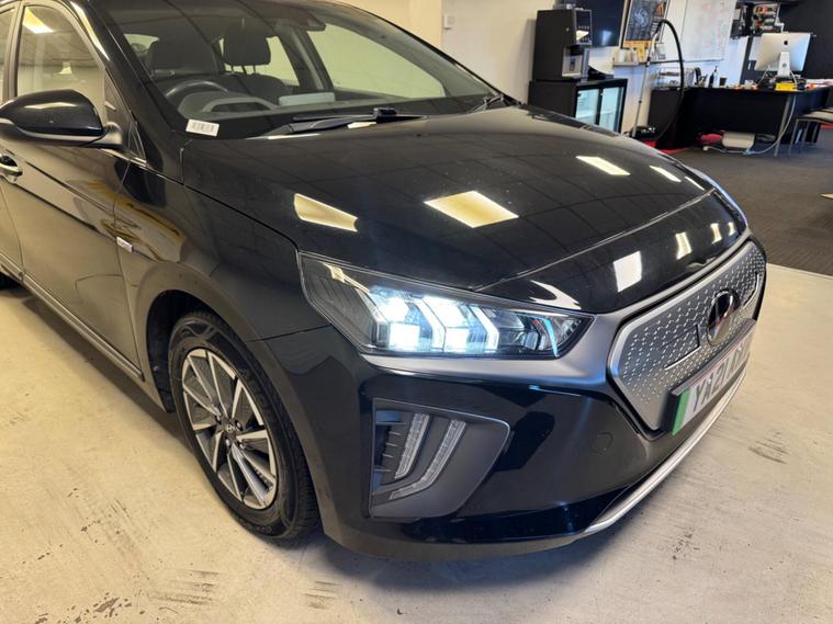 Discover this 2021 Hyundai IONIQ Premium, a superb electric vehicle offering an impressive battery range. This model boasts a 43 kWh battery, providing a maximum range of 193 miles when new, ensuring you can travel further on a single charge. Charging is convenient, with a full charge at home using a 7kW charger taking approximately 6 hours and 5 minutes, while rapid public charging can take you from empty to 80% in just 54 minutes.This IONIQ Premium comes equipped with a host of desirable features designed to enhance your driving experience. Enjoy the comfort of heated driver seats, and the convenience of automatic headlights that activate with a dusk sensor. The smart adaptive cruise control makes motorway driving effortless, while the smart key with keyless entry and start button allows for seamless access. Parking is made easier with rear parking sensors, and you'll appreciate the generous boot space for all your luggage..