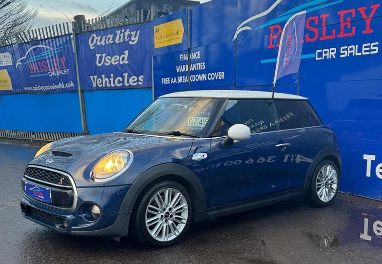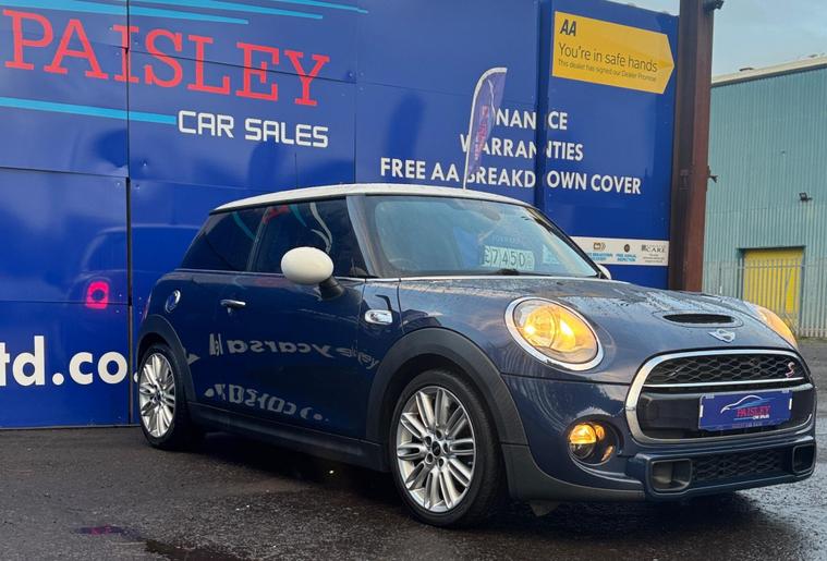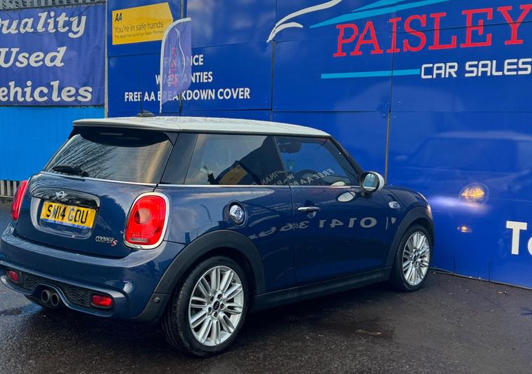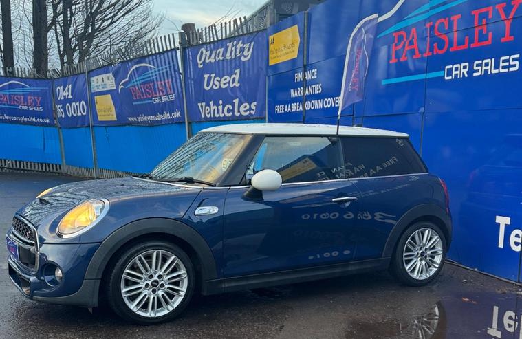 Mini Cooper S Euro 6 (s/s) 3dr, Full Service History, ULEZ Compliant Just Arrived!? Mileage: 62, 400(Warranted)? Service History: Full Service? MOT Valid Until: Full 12 months? Keys: 2 Keys? ULEZ Compliant: Yes (Euro 6)? Warranty: 12Months Included CAR HAS STILL TO GET PREPARED FOR FORECOURT MORE PICS SOON!This exceptionally well-maintained Mini Cooper S is in outstanding condition inside and out, boasting a great specification from the factory, including:✅ Electric Windows & Mirrors✅ Bluetooth Hands Free Function with USB Audio✅ Auto Lights✅ Central Locking✅ Air Conditioning✅ Daytime Running Lights✅ Start-Stop Button with Keyless Start✅ HPI Clear – All Documentation PresentQuality Assurance & Extra Benefits:Finance Available – Competitive finance options to suit your budget.Part Exchange Welcome – Get a fair valuation for your current vehicle.AA Approved Dealership – Buy with confidence.Drive Away Same Day – 5-Day Insurance Available Courtesy of the AA.Free Home Delivery – Up to 25 miles for online orders.Flexible Payment Options – We accept all major debit cards.About Paisley Car Sales :We are a trusted, Renfrewshire-Based used car dealership, dedicated to providing high-quality vehicles and outstanding customer service. If this vehicle doesn’t meet your needs, we can source one to your specifications.? Visit Us: Office 2, Wellington street, Paisley, Renfrewshire, PA3 2JQ? Call Us: 01410022098? Website: dealer's website this exclusive web-discounted price while it lasts! Contact us today for more details or to book a test drive. ?Here at Paisley Car Sales we are always ready to go the extra mile. Don't hesitate to contact us!Vehicle registered: 16/05/2014Buying with Paisley Car Sales Ltd:Welcome to Paisley Car Sales, are a small family run used dealership. We hope you enjoy your experience with us, we encourage you to browse our current stock of cars and if there is nothing that jumps out to you, we are more than happy to source a vehicle on your request. Feel free to get in touch.