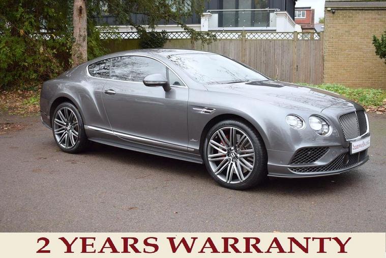 This is one of our 50 Bentleys in stock: 2015/65 (2016 Model) Bentley Continental GT Speed. Finished in unmarked Tungsten with 21 inch Speed alloys in Dark Tint. The interior is trimmed in Beluga with emblems on headrests in Beluga, with secondary hide and contrast stitching in Fireglow and carbon fascia panels. Ventilated front seats and massage function, adaptive cruise, rear view camera and Comfort Sports Equipment. Only two owners and known to ourselves, with only 53, 000 miles with full history. Immaculate condition throughout.Please see our website dealer's website to view our full selection..