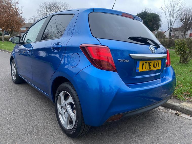 This 2016 Toyota Yaris VVT-h Icon boasts exceptionally low mileage for its age, having covered just 16, 000 miles, and benefits from a full dealership service history with an MOT valid until March 2026. This Euro 6 compliant 1.5L petrol hybrid is presented with a clear vehicle history check. The Icon trim level includes desirable features such as 15 inch silver machined alloy wheels, Bluetooth connectivity, a rear view reversing camera for easier parking, and dual zone climate control air conditioning.The exceptional fuel economy of 86 mpg highlights how this Yaris is more economical than many other vehicles in its class. Furthermore, its low CO2 emissions and low insurance group indicate that running costs are kept to a minimum, making this a sensible and cost effective choice for everyday driving..