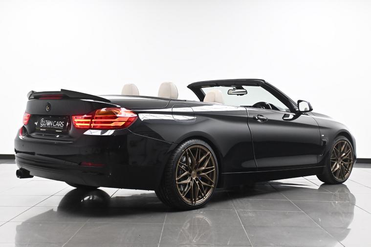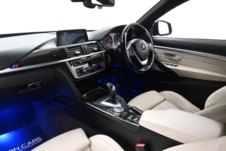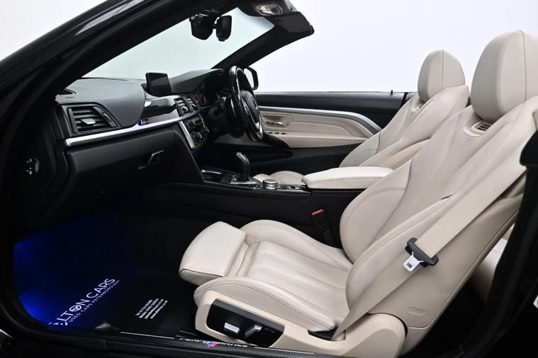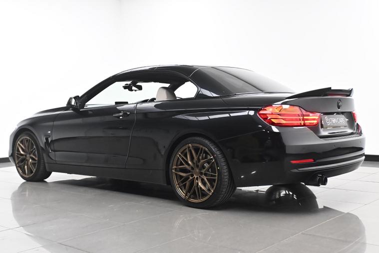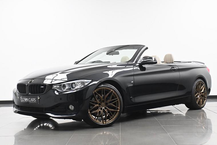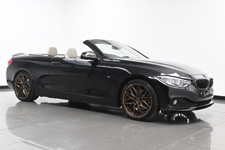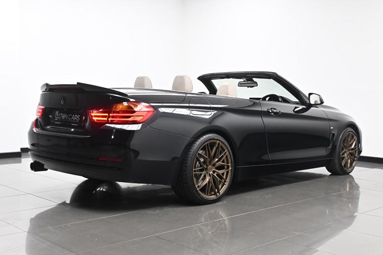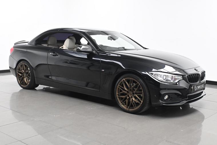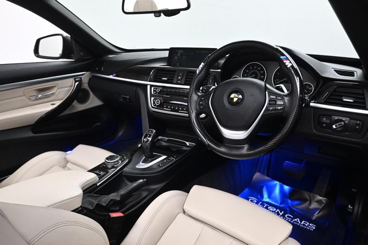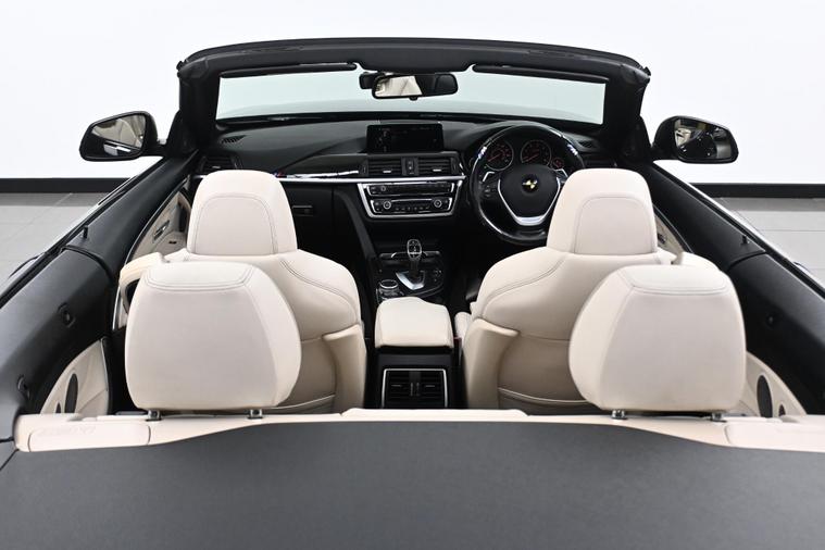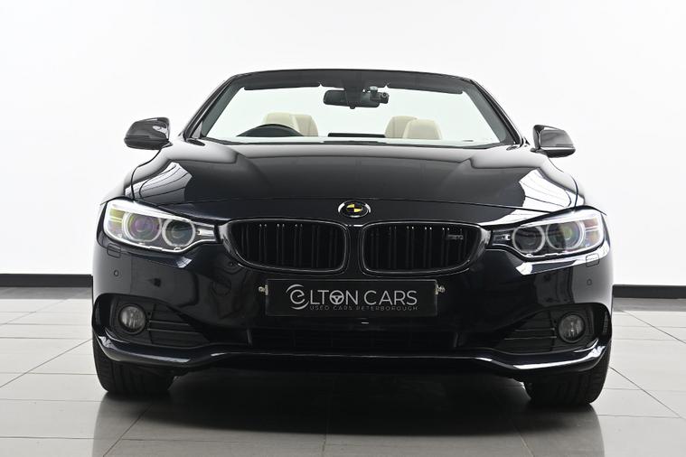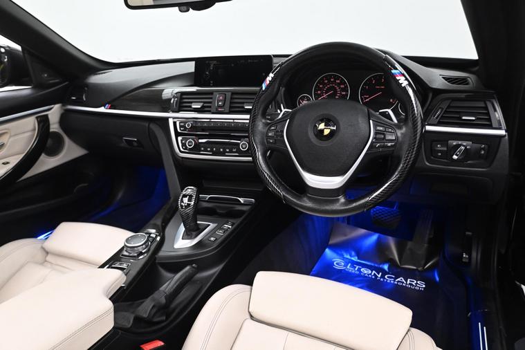 THIS IS A STUNNING 4 SERIES CONVERTIBLE IN BLACK, IT COMES WITH TWO KEYS, BMW SERVICE HISTORY, LONG MOT AUG 2026, 19” ALLOY WHEELS, HEATED FRONT SEATS, HARMAN KARDON SOUND SYSTEM, PARKING SENSORS, AMBIENT LIGHTING, DAB RADIO, REAR SPOILER, PRIVACY GLASS, SAT NAV, MEDIA, WARRANTY AND FINANCE AVAILABLE, PX WELCOME, PLEASE CALL FOR MORE INFO.