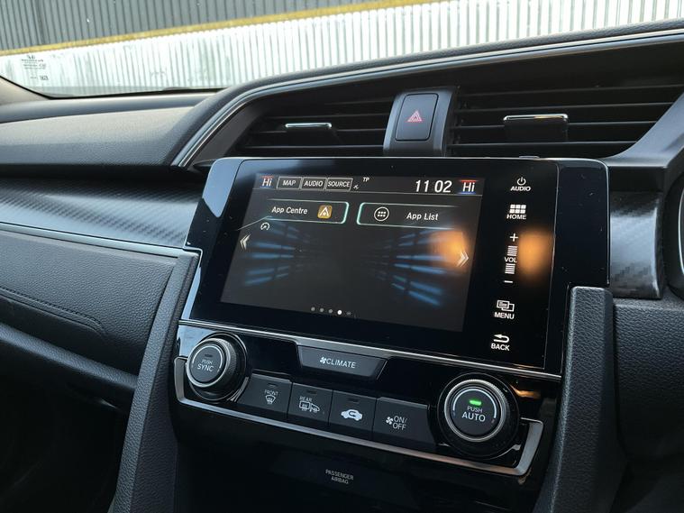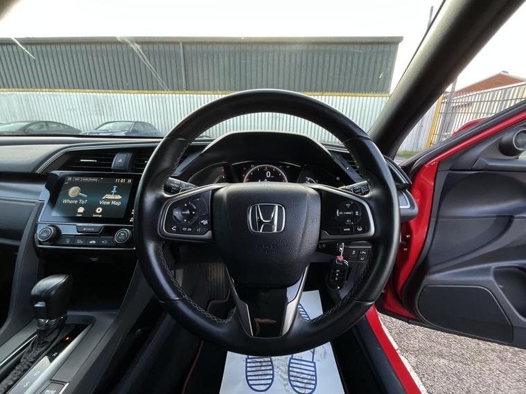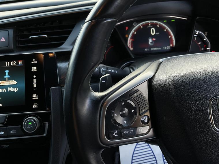 - Leather covered multi-function steering wheel with tilt adjustment and telescopic adjustment