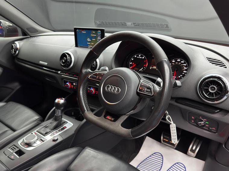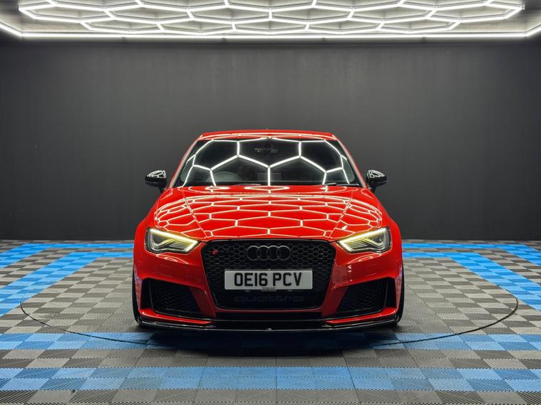 Here at Motor Gurus we are delighted to offer a Audi RS3 2.5 TFSI Sportback S Tronic quattro. This vehicle is in immaculate condition inside and out. This specific vehicle is finished in a GLOSS ORANGE and is contrasted by a BLACK LEATHER interior. This vehicle comes included with: FRONT & REAR PARKING SENSORS, MODIFIED EXHAUST, AFTER MARKET REAR DIFFUSER/ FRONT SPLITTER, AUDI SUPER SPORTS SEATS, PRIVACY GLASS, AUTOMATIC HEADLIGHTS, HEATED SIDE MIRRORS, FRONT HEATED SEATS, DRIVING MODES, TWIN CUPHOLDERS, CLIMATE CONTROL, SAT NAVIGATION, DAB RADIO, BLUETOOTH AUDIO, TELEPHONE CONNECTIVITY, TYRE PRESSURE MONITORING AND MUCH MORE! Our Audi RS3 2.5 TFSI Sportback S Tronic quattro has come to us with SERVICE HISTORY and 2 KEYS! We will also provide this vehicle with a 12 MONTH MOT as well as a FRESH OIL SERVICE before it leaves our premises (OTR). MODIFIED.