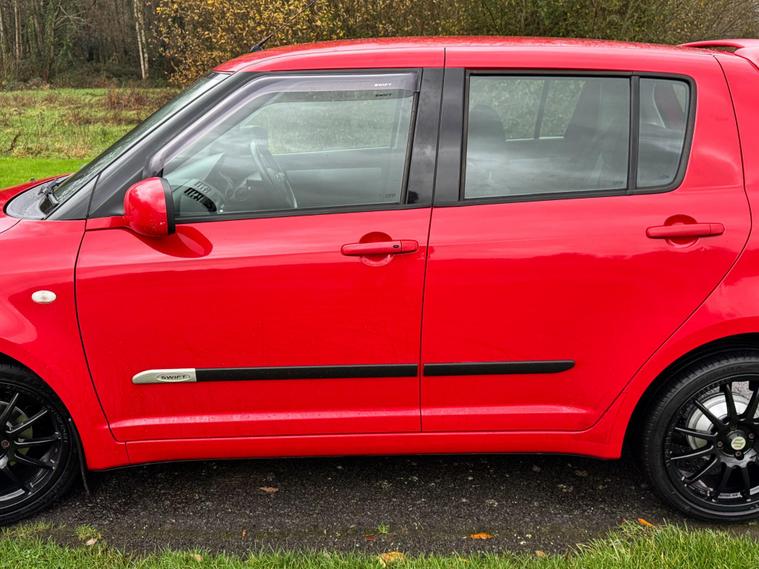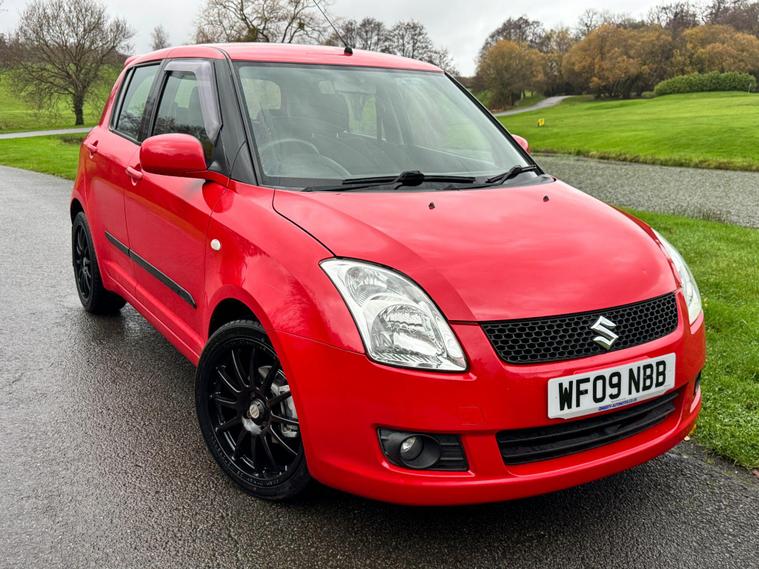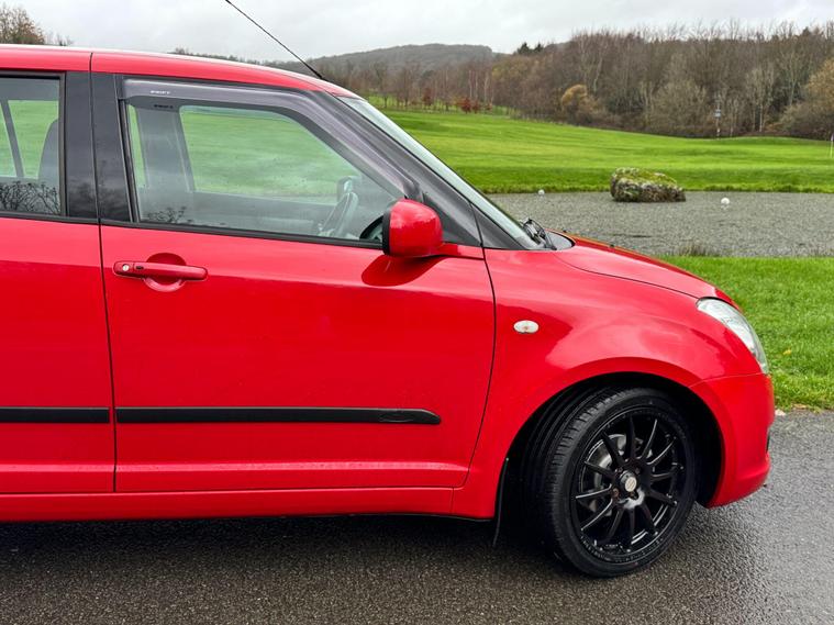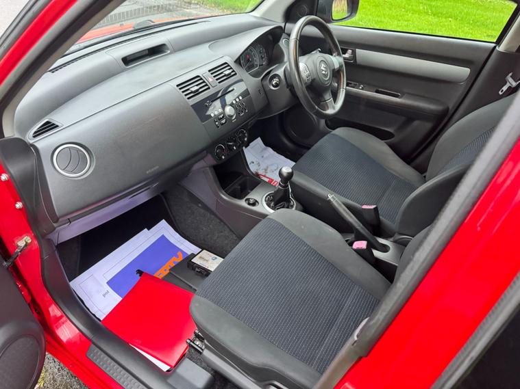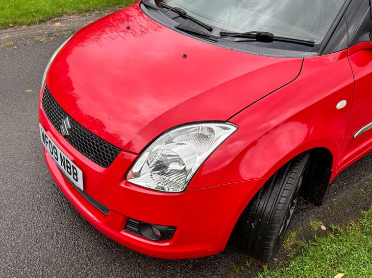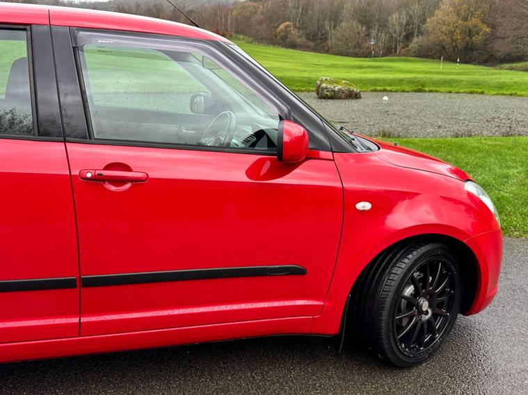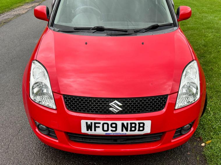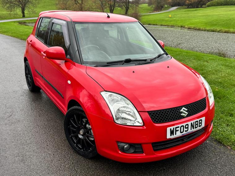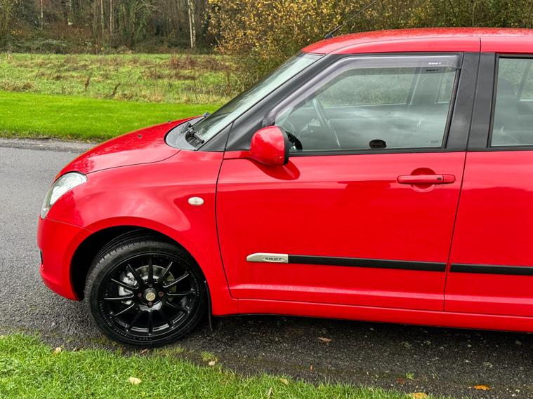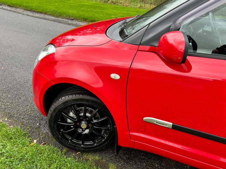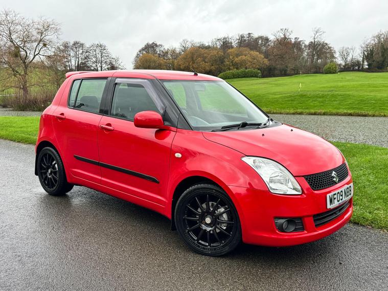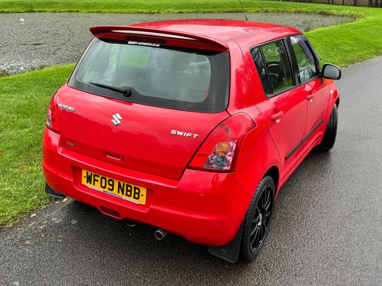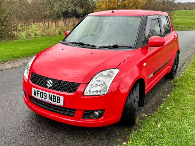 We are pleased to be presenting this 2009 Suzuki Swift 1.5 GLX 5dr, finished in red and showing 70, 000 miles. This example has had 2 owners, both from the same family, and was purchased locally from Suzuki Tracks.This Swift has been serviced every year since new, with 11 services stamped in the book up to 2020. From 2020 onwards it moved to its second owner, where we have cared for it since, and it has never had any expense spared. We have receipts for all servicing and maintenance since 2020, which will come with the car.Powered by the reliable 1.5 petrol chain-driven engine, running costs include £215 annual road tax and 45 MPG combined.Being the GLX, this is the top specification, and this example also benefits from factory Suzuki mud flaps, wind deflectors, and keyless starting. Standard equipment includes air conditioning, alloy wheels, electric windows, remote central locking, and front fog lights.As part of our preparation, we have had the alloy wheels professionally refurbished, fitted two new tyres, replaced the front brake discs and pads, and carried out our oil and filter service.This Swift is in superb condition inside and out.As with all our vehicles, this Suzuki has been treated to a multi-stage valet using the best products Auto Glym have to offer. Every car we handle receives, at minimum, a service as part of our pre-sale preparation. Supplied with 12 months MOT without advisory, our complimentary 3-month warranty, 12 months free AA breakdown cover, and 2 keys.Please do not hesitate to get in touch via Text, Call or Email at any time to arrange a viewing and test drive. Viewing available by appointment only. To find out more about us, head to our website at dealer's website Whilst every effort has been made to ensure the accuracy of the above information, sometimes errors may occur — please check with a salesperson..