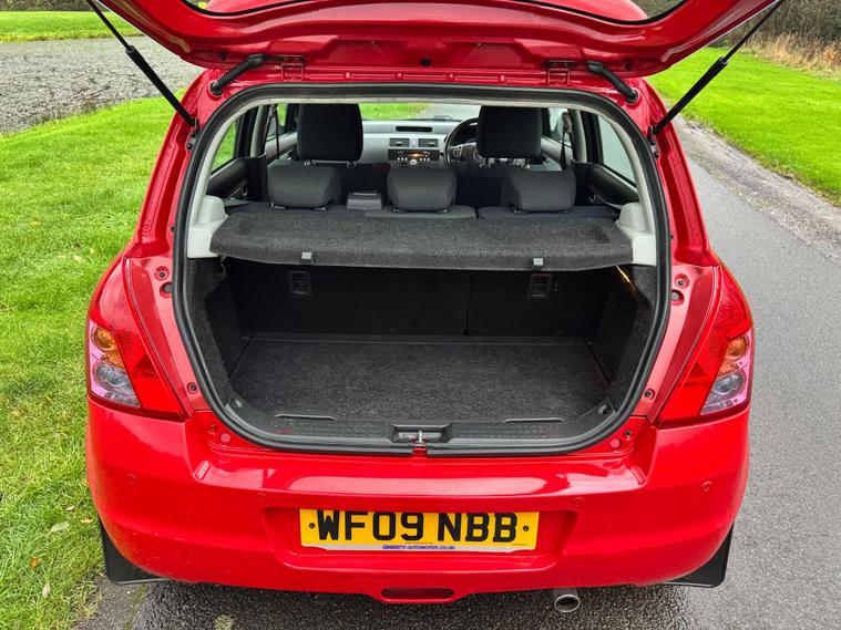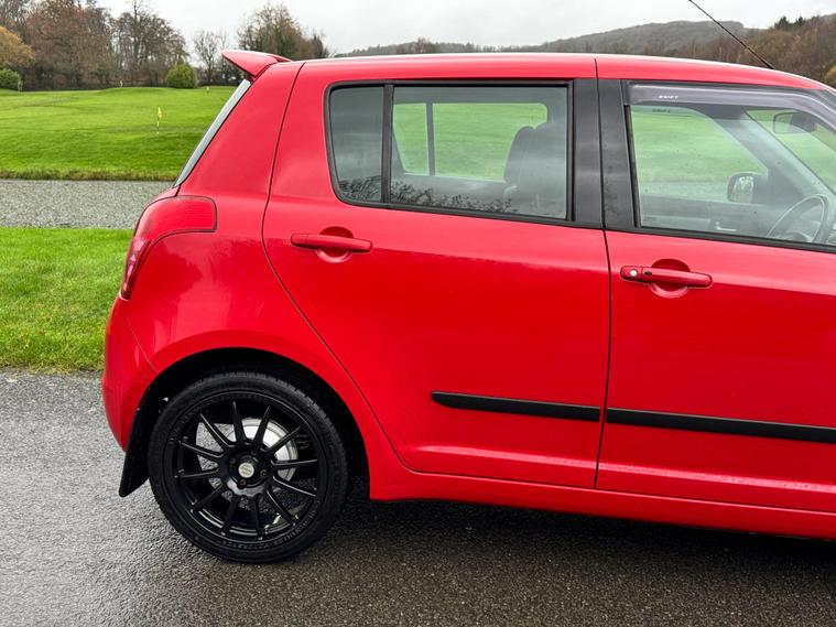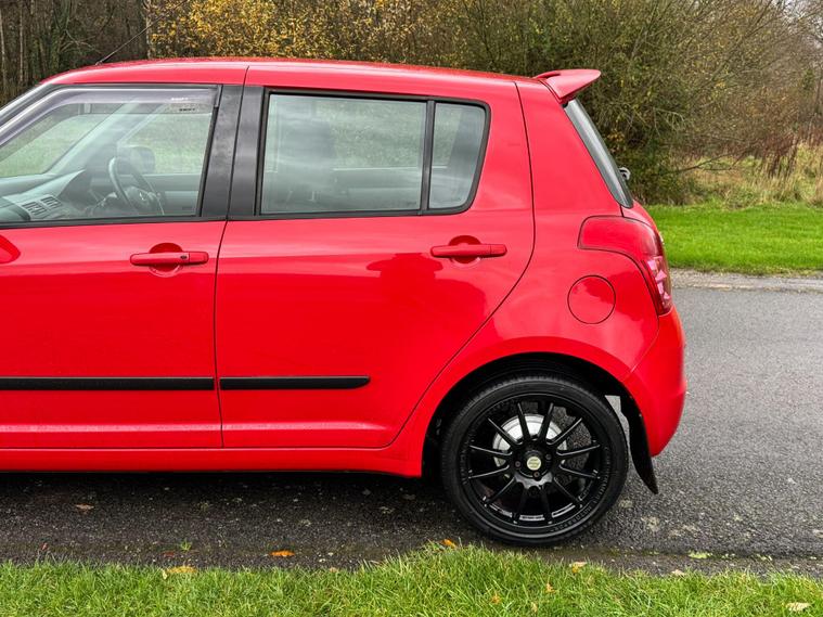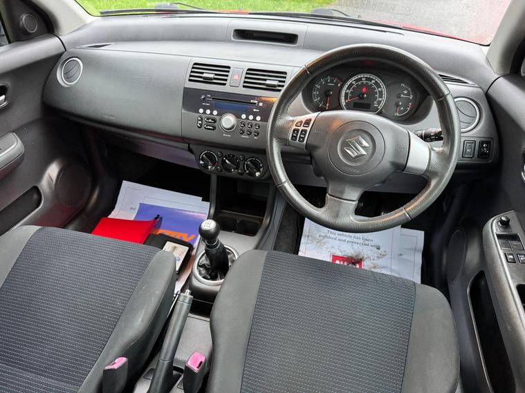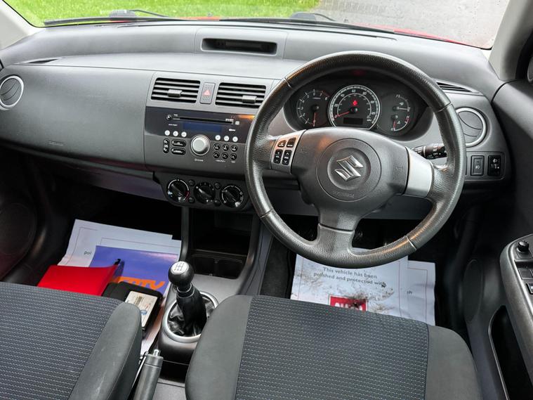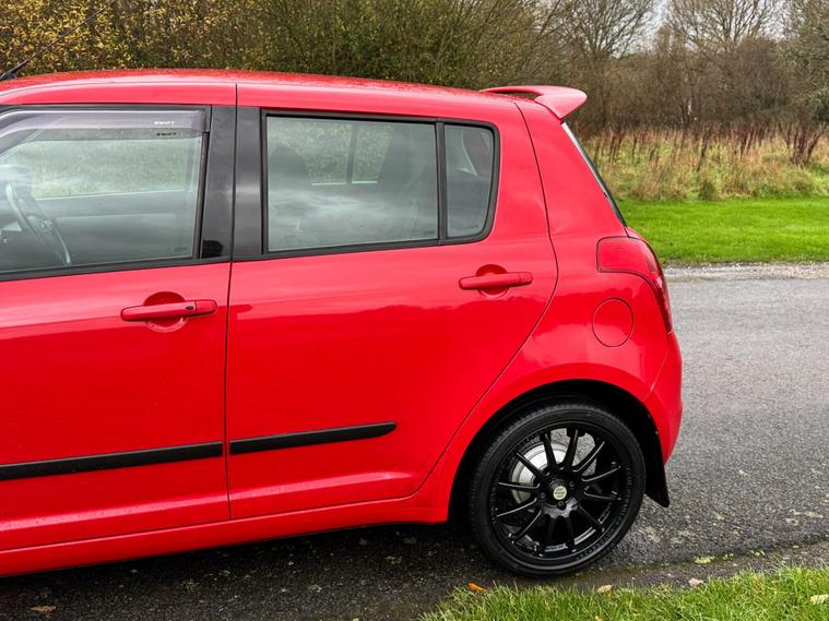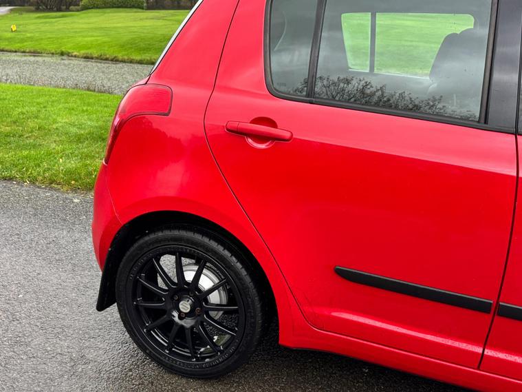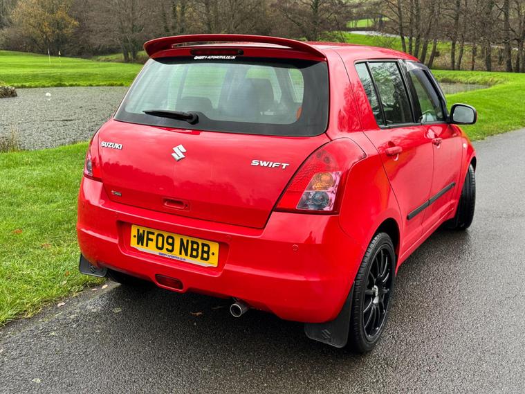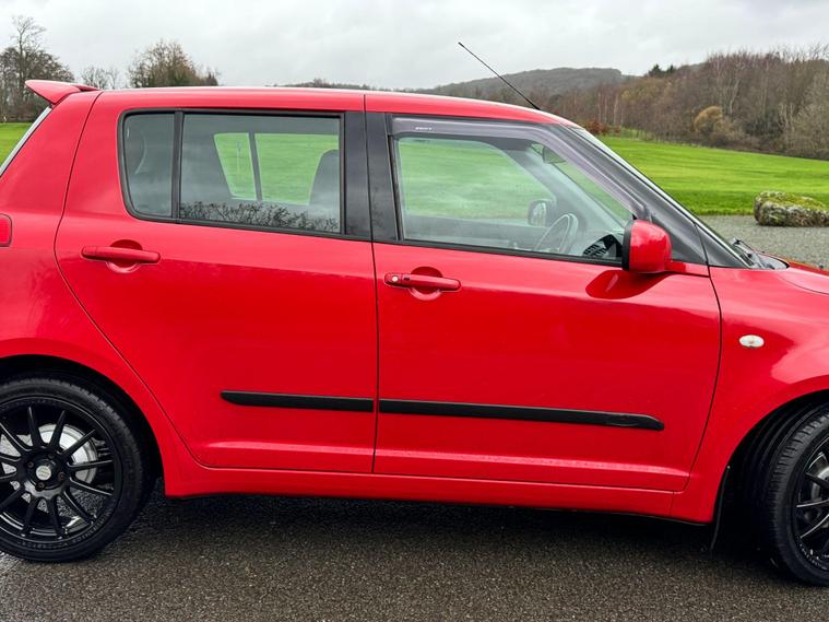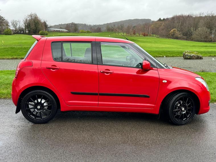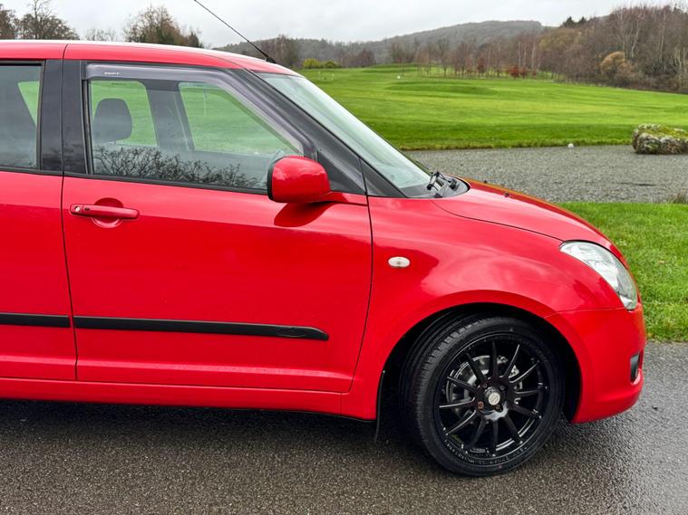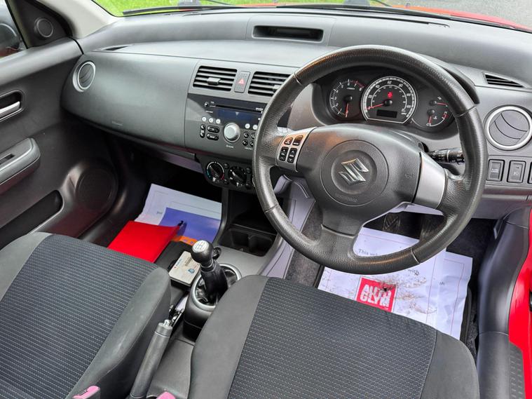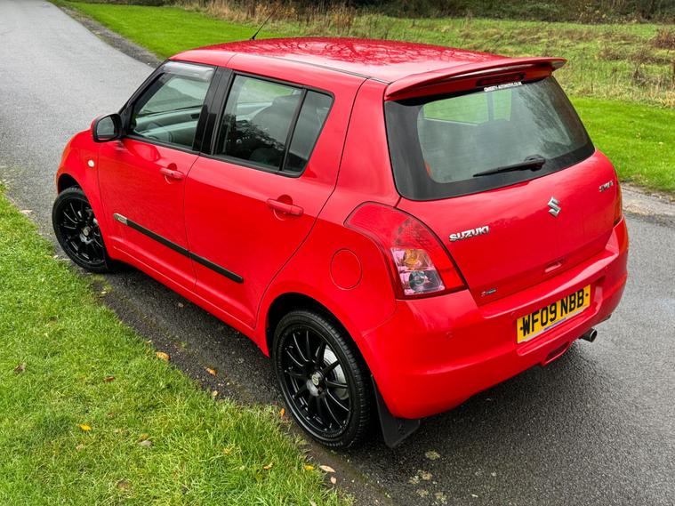 We are pleased to be presenting this 2009 Suzuki Swift 1.5 GLX 5dr, finished in red and showing 70, 000 miles. This example has had 2 owners, both from the same family, and was purchased locally from Suzuki Tracks.This Swift has been serviced every year since new, with 11 services stamped in the book up to 2020. From 2020 onwards it moved to its second owner, where we have cared for it since, and it has never had any expense spared. We have receipts for all servicing and maintenance since 2020, which will come with the car.Powered by the reliable 1.5 petrol chain-driven engine, running costs include £215 annual road tax and 45 MPG combined.Being the GLX, this is the top specification, and this example also benefits from factory Suzuki mud flaps, wind deflectors, and keyless starting. Standard equipment includes air conditioning, alloy wheels, electric windows, remote central locking, and front fog lights.As part of our preparation, we have had the alloy wheels professionally refurbished, fitted two new tyres, replaced the front brake discs and pads, and carried out our oil and filter service.This Swift is in superb condition inside and out.As with all our vehicles, this Suzuki has been treated to a multi-stage valet using the best products Auto Glym have to offer. Every car we handle receives, at minimum, a service as part of our pre-sale preparation. Supplied with 12 months MOT without advisory, our complimentary 3-month warranty, 12 months free AA breakdown cover, and 2 keys.Please do not hesitate to get in touch via Text, Call or Email at any time to arrange a viewing and test drive. Viewing available by appointment only. To find out more about us, head to our website at dealer's website Whilst every effort has been made to ensure the accuracy of the above information, sometimes errors may occur — please check with a salesperson..