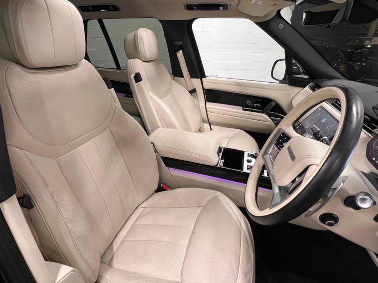 VAT QUALIFYING BLACK WITH IVORY LEATHER 2022 Land Rover Range Rover P400 HSE offers an exceptional blend of luxury and capability. Powered by a robust 3.0L Petrol Engine and featuring a Four Wheel Drive drivetrain, this Euro 6 compliant vehicle is ready for any journey. The HSE trim ensures a premium experience, complemented by features such as 24 way heated and cooled electric front seats with hot stone massage and exclusive class comfort rear seats. Enjoy your favourite music through the Meridian Signature Sound System, and stay comfortable in any weather with the Hot Climate Pack and Four Zone Climate Control. With a substantial towing weight of 3500 kg and a large boot space, practicality is assured.VAT QUALIFYING The performance of this Range Rover is truly impressive, accelerating from 0 to 60mph in just 5.5 seconds, demonstrating its dynamic prowess. This swift acceleration, combined with the sophisticated comfort features like the hot stone massage seats and the advanced Meridian sound system, sets it apart from other vehicles in its class. Furthermore, the inclusion of Advanced Tow Assist with a towbar highlights its superior towing functionality, making it a more capable choice for those who need to tow..