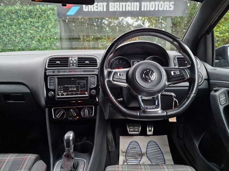 New Disc and PadsNew full Service Fresh MOT 6 Months Warranty This Volkswagen Polo TSI GTI from 2016 boasts an exceptional service history, with its last service completed on 2025-12-04 at 104187 miles, ensuring it is well maintained. This Euro 6 compliant 1.8 litre petrol engine model has had only one previous owner and comes with a clear vehicle history check. For your peace of mind, a 12 month MOT will be provided on purchase, and the vehicle is covered by a 6 month warranty. Notable features include LED headlights, manual air conditioning, and Bluetooth connectivity for both phone calls and audio streaming.Volkswagen Polo 1.8 TSI BlueMotion Tech GTI DSG – Available at Great Britain Motors!Sporty and refined, this Polo GTI brings together performance, style and everyday practicality in one compact package. With its powerful 1.8-litre TSI engine and smooth DSG transmission, it’s perfect for those who crave sporty driving without sacrificing comfort.✨ Key Features:✅ 1.8 L TSI Turbo Petrol Engine — lively performance and strong acceleration✅ DSG Automatic Gearbox — seamless gear changes and a smooth driving experience✅ GTI Styling — sporty bodykit, dynamic design cues & premium finishes✅ BlueMotion Tech — improved efficiency and modern emissions compliance✅ Compact Hatchback Practicality — easy to maneuver, ideal for urban use or daily drivingLooking for a fun, stylish and performance-oriented hatchback? Book your test drive of the Volkswagen Polo 1.8 TSI GTI DSG today at Great Britain Motors! ??The performance of this Polo TSI GTI is truly impressive, accelerating from 0-62mph in just 6.7 seconds, a figure that highlights its dynamic capabilities compared to other vehicles in its class. This swift acceleration, combined with the comprehensive provenance information and desirable features, makes this Volkswagen Polo a compelling choice for those seeking a sporty yet practical hatchback..