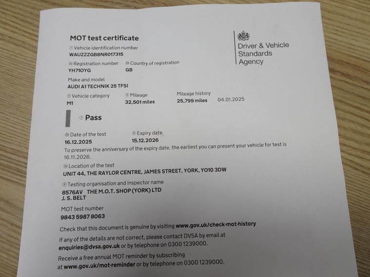 We are delighted to offer for sale this low mileage 2022 Audi A1 TFSI Technik which boasts a full service history, with its last service completed on 2025-11-04 at 31810 miles, and has had only one owner from new. This Euro 6 compliant model features a 1.0 litre petrol engine and comes with a 12 month MOT for your peace of mind. Notable features include striking LED headlights with dynamic rear indicators, a light and rain sensor for automatic headlight activation, and a Bluetooth interface for seamless connectivity.Experience impressive fuel economy with this Audi A1, achieving an outstanding 51 miles per gallon, which indicates it is more economical than many similar vehicles. The manual air conditioning ensures a comfortable cabin environment, and you'll appreciate the generous boot space for all your luggage. This Technik trim level offers a well equipped and practical driving experienc.Supplied with our own Workshop Inspection, 12 Months MOT, 6 Months National Premium Warranty and 12 Months Breakdown Cover for added peace of mind. These low mileage, 1 owner examples are usually snapped up quickly so call us now to avoid disappointment!!!.