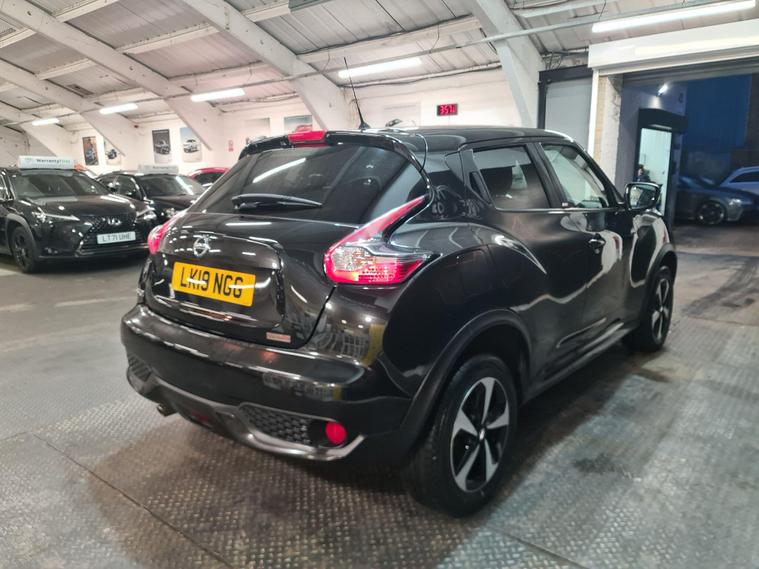 Discover this 2019 Nissan Juke Bose Personal Edition, a car with remarkably low mileage for its age, having covered just 39, 680 miles. This Euro 6 compliant 1.6 litre petrol model boasts a clear vehicle history check, offering peace of mind. Inside, you'll find the sophisticated BOSE Personal Sound System, designed to immerse you in your favourite music. Convenience is key with automatic climate control featuring a pollen filter, and automatic headlights that activate with the dusk sensor.The Juke Bose Personal Edition also includes a colour reversing camera for easier parking and an intelligent key system with a push button start for effortless entry and ignition. Its low insurance group rating further enhances its appeal, suggesting lower running costs compared to similar vehicles. This combination of desirable features and excellent provenance makes this Nissan Juke a compelling choice for those seeking a stylish and well equipped compact car..