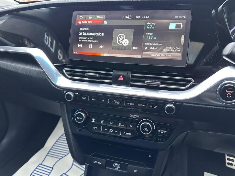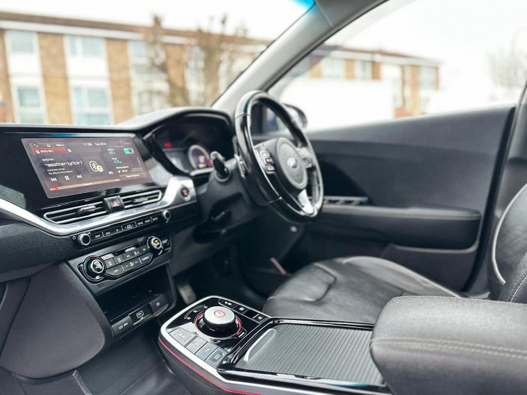 18 MONTH WARRANTY WITH HYBRID BATTERY COVER INCLUDED !!! 12 MONTHS AA BREAKDOWN COVER INCLUDED, HPI CLEAR WITH REPORT INCLUDED, EXTENDED WARRANTY AVAILABLE FOR UP TO 36 MONTHS - This 2021 Kia Niro 4+ electric vehicle boasts a full service history, ensuring its excellent provenance. As an electric model, it offers a substantial battery total capacity of 68 kWh, providing a maximum range of 282 miles when new. Charging is convenient, with a full charge at home using a 7kW charger taking approximately 9 hours and 35 minutes, while rapid public charging can achieve 80% capacity in just 54 minutes from empty. This Niro comes with 12 months MOT provided on purchase for your peace of mind.The 4+ trim level is well equipped with notable features designed to enhance your driving experience. These include a tilting and sliding power sunroof, a smart entry system with keyless entry and an engine start stop button, and a driver's power memory seat with memory mirror function. For added convenience and safety, it features automatic headlights and adaptive smart cruise control with stop and go functionality. These features collectively highlight how this Kia Niro offers a superior and more comfortable driving experience compared to other similar vehicles..