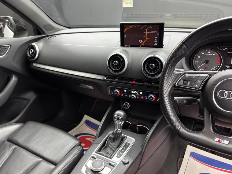 Here at Motor Gurus we are delighted to offer an Audi S3 2.0 TFSI Sportback S Tronic quattro. This vehicle is in immaculate condition inside and out. This specific vehicle is finished in a GLOSS WHITE and is contrasted by a BLACK LEATHER interior. This vehicle comes included with: REAR PARKING SENSORS, PRIVACY GLASS, PERFORATED GRIPPED LEATHER STEERING WHEEL, AUTOMATIC HEADLIGHTS, HEATED SIDE MIRRORS, CRUISE CONTROL, TWIN CUPHOLDERS, DRIVING MODES, FRONT HEATED SEATS, CLIMATE CONTROL, SAT NAVIGATION, DAB RADIO, BLUETOOTH AUDIO, TELEPHONE CONNECTIVITY, APPLE CARPLAY, TYRE PRESSURE MONITORING AND MUCH MORE! We will also provide this vehicle with a 12 MONTH MOT as well as a FRESH OIL SERVICE before it leaves our premises (OTR). CAT S!.