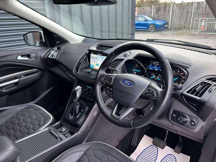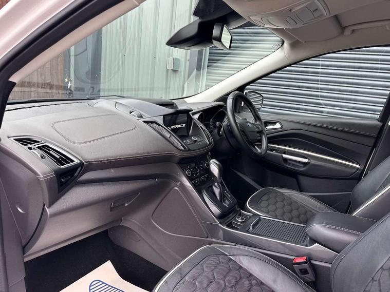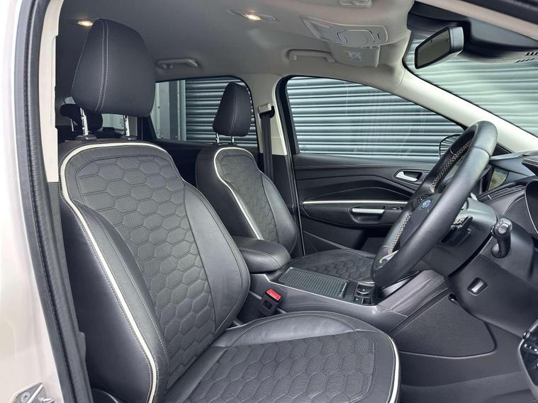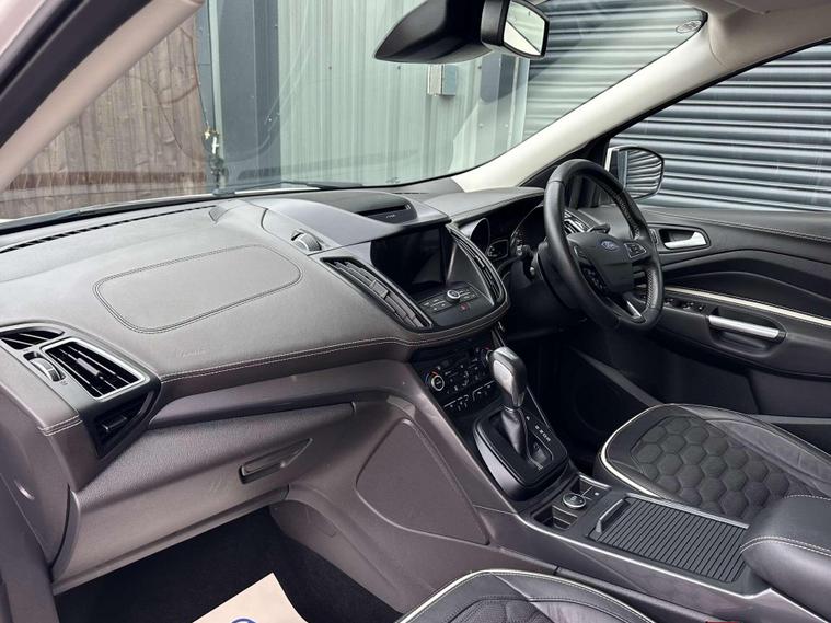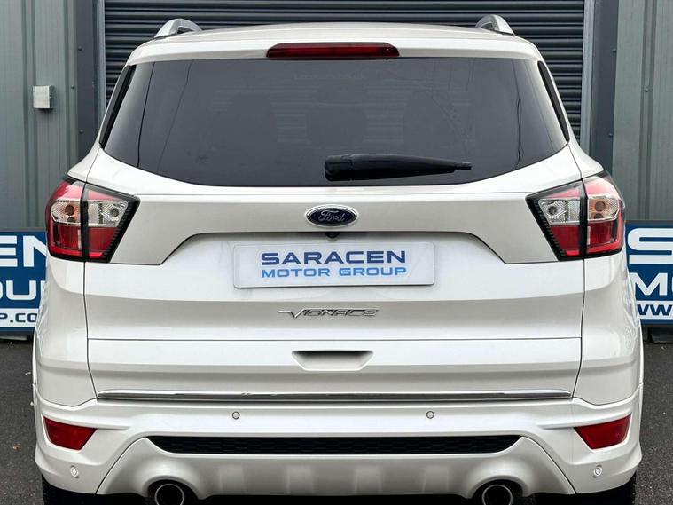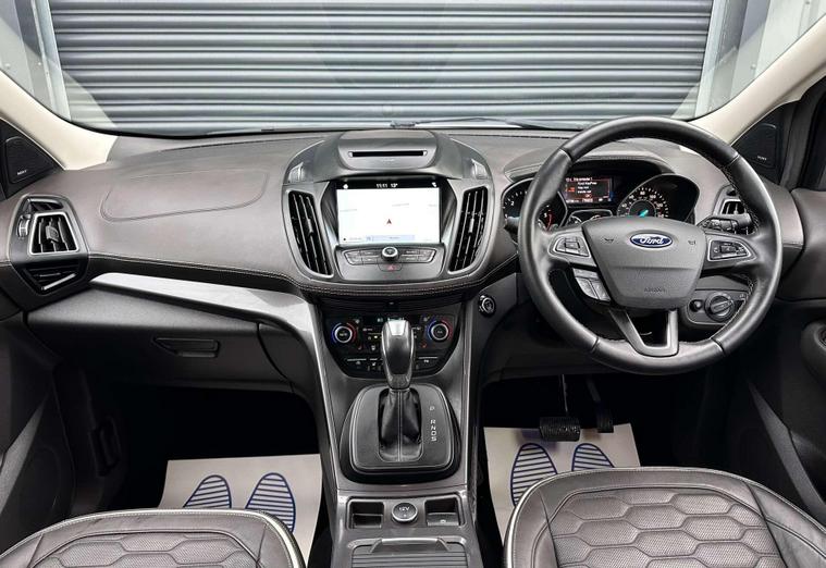 Ford Kuga 2.0 Vignale TDCi 4x4 Auto 4WD 5dr Euro 6 ULEZ FREE. Finished in Pearlescent white paint with Ebony honeycomb leather interior/ contrast white stitching.18'' alloy wheels, Ford SYNC3 premium navigation system with DAB, Apple Car play/ Android Auto, voice control, cruise control with speed limiter, enhanced active park assist, rear view camera, memory door mirrors, electric windows front and rear with global opening/closing function, space saver spare wheel, folding door mirrors with puddle lights, heated front windscreen, heated washer jets, heated front seats, heated steering wheel, LED DRL's, 6-way adjustable passenger seat with lumbar adjustment, 10-way power adjustable drivers seat, dual zone climate control, air conditioning, hands free power tailgate, keyless start, ambient interior lighting, rain sensing wipers, ebony leather multifunction steering wheel, hill start assist.Here at Saracen Motor Group we have been awarded AA Platinum dealership recognition along with being nominated for best customer service by Autotrader for 2021, 2022, 2023, 2024 & 2025. We are a 5-star dealership with over 600 5-star reviews across all internet platforms including Autotrader and have been regarded as one of the best dealerships to buy from in the UK.Our preparation inspected each vehicle to the highest level possible for its age and mileage. You can rest assure your next car has been cared for to the highest standard. Service history, V5 and the HPI certificate will all be present on viewing and collection. With our location based in Battlesbridge, Essex you can enjoy a haggle-free buying experience where you can drive away the same day if prior arranged, additional fees apply please see our website for details..