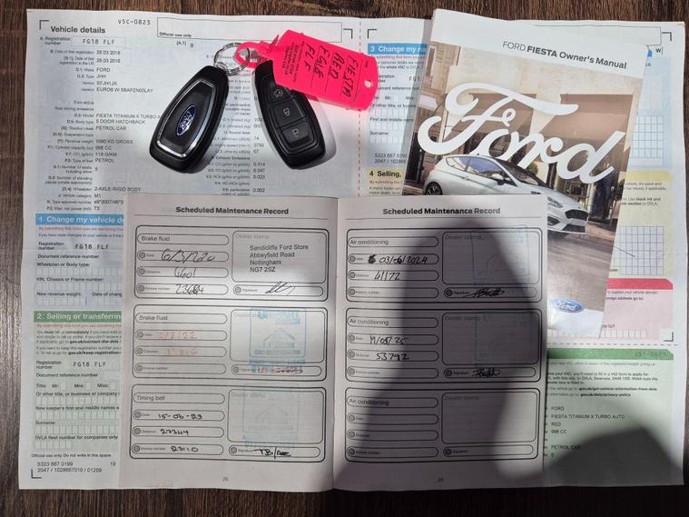 This 2018 Ford Fiesta T Titanium X presents a superb example of a well maintained vehicle with full service done at 4601 in 2020, 13216 in 2022, 27344 in 2023, 41172 in 2024, 53792 in 2025. Powered by a 1.0L Euro 6 compliant petrol engine, this model offers an efficient and responsive driving experience. The Titanium X trim level ensures a host of desirable features, including the impressive B and O PLAY In-Car Audio Premium Sound System, integrated with the Ford SYNC 3 Navigation System which supports both Android Auto and Apple CarPlay for seamless connectivity. Heated front seats and steering wheel. For your peace of mind, it is equipped with side impact airbags and benefits from power steering for effortless manoeuvrability. The Ford Easy Fuel system simplifies refuelling, and the electrically operated front windows with one touch for the driver add to the convenience.The Ford Fiesta T Titanium X stands out with its premium audio and navigation system, offering a superior entertainment and guidance experience compared to many other vehicles in its class. The inclusion of Android Auto and Apple CarPlay further enhances its appeal, allowing you to easily access your favourite apps and functions from your smartphone. This particular model combines practicality with a touch of luxury, making it an excellent choice for those seeking a reliable and feature rich compact car..