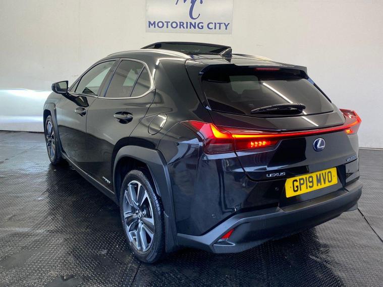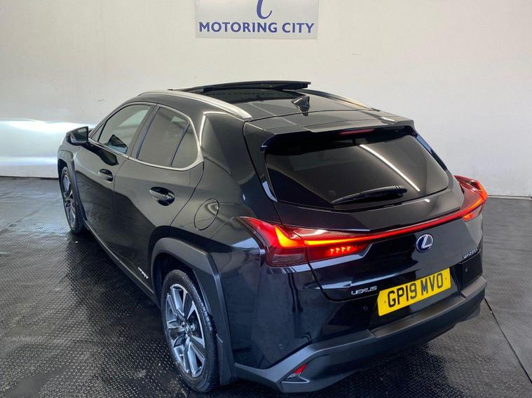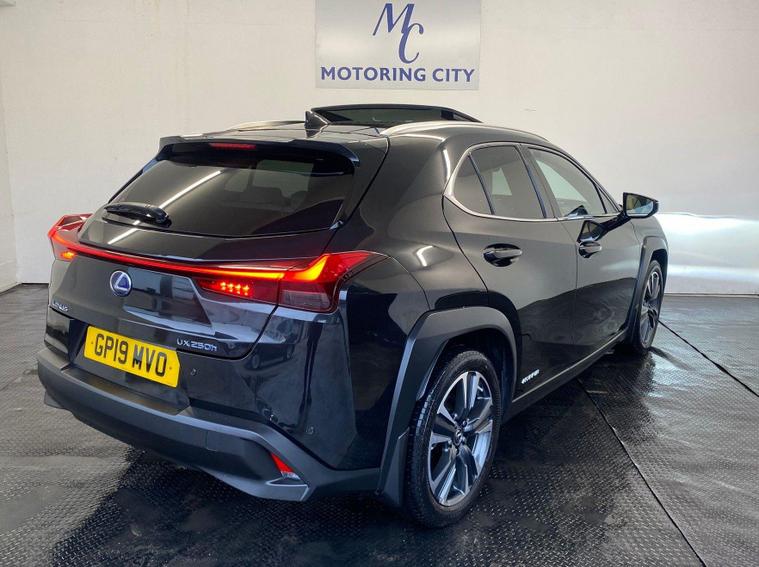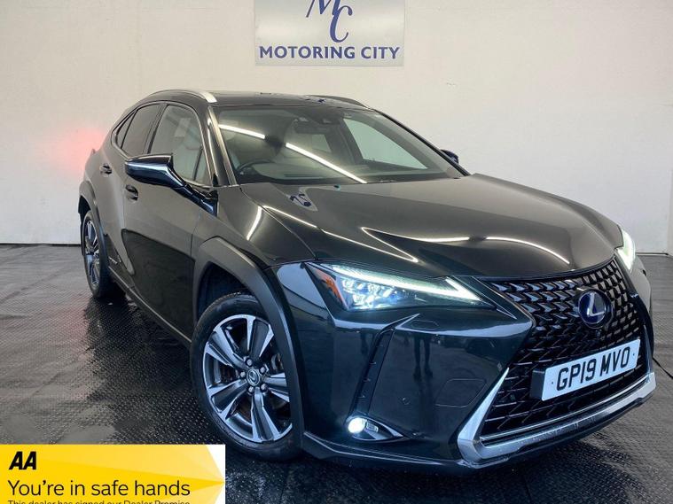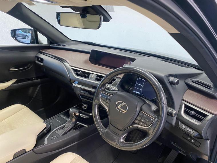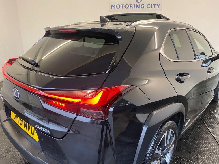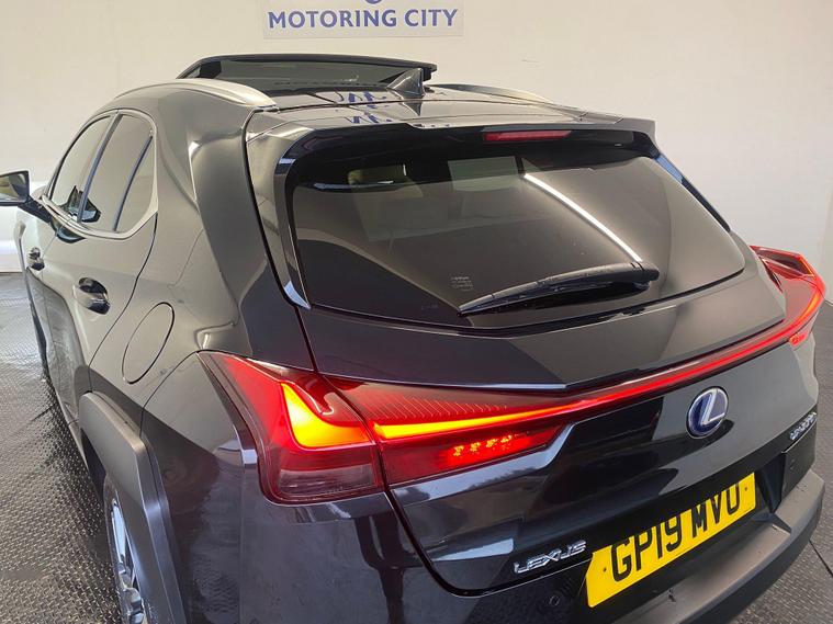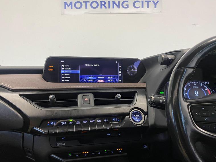ULEZ COMPLIANT|PETROL HYBDRID| AUTOMATIC |KEYLESS ENTRY | 2 KEYS | PARKING SENSORS |REVERSE CAMERA | 360 CAMERA | HEADS UP DISPLAY | SUNROOF | ELECTRIC TAILGATE | DRIVER MEMORY SEAT | ELECTRIC MIRRORS | ELECTRIC DRIVER & PASSANGER SEAT ADJUSTMENT | AC | VOICE COMMAND | CRUISE CONTROL | LANE ASSIST | AUTO WIPERS | AUTO HEADLIGHTS | SPORT, NORMAL, ECO DRIVE MODE OPTION | EV MODE |AUTO HOLD BRAKE | WIRELESS PHONE CHARGING | 12V | DRIVER & PASSANGER HEATED SEATS | HEATED STEERING | DRIVER & PASSANGER COOLING SEATS | CD PLAYER | NAVIGATION | RADIO AM, FM, DAB | BLUETOOTH | MIRACAST | AUX |HPI CLEAR |FREE AA BREAKDOWN COVER WITH ALL PURCHASES|FINANCE & WARRANTY AVAILABLE|DELIVERY AVAILABLE NATIONWIDE | £99 ADMIN FEEThis 2019 Lexus UX 250h Takumi is a prime example of refined hybrid motoring, boasting a single owner and a full service history. As a Euro 6 compliant model, this 2.0 litre petrol hybrid offers an efficient and smooth driving experience. The Takumi trim level comes equipped with a suite of advanced parking aids, including intelligent parking sensors front and rear, a reversing camera with back guide lines, and a 360 panoramic view camera, making manoeuvring in tight spaces effortless. Further enhancing its premium feel are the striking 3 eye LED headlights with adaptive high beam and a luxurious heated leather steering wheel for added comfort during colder journeys. The Lexus UX 250h Takumi stands out with its impressive performance, achieving 0 to 62 miles per hour in just 8.5 seconds, a testament to its responsive hybrid powertrain. This model also highlights its low CO2 emissions, indicating a more environmentally conscious choice compared to many vehicles in its class. The combination of its sophisticated technology, efficient hybrid system, and the thoughtful features found in the Takumi trim, such as the advanced camera systems and heated steering wheel, positions this Lexus UX as a compelling option for those seeking a blend of luxury, practicality, and forward thinking engineering..