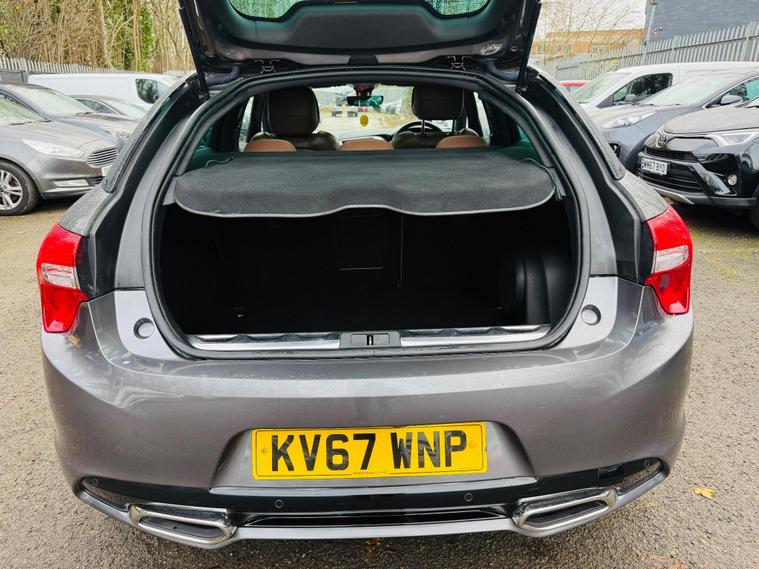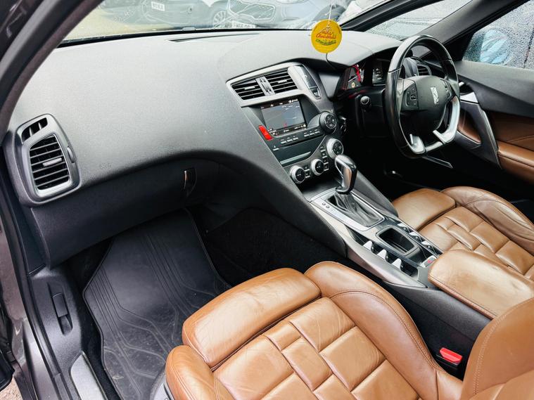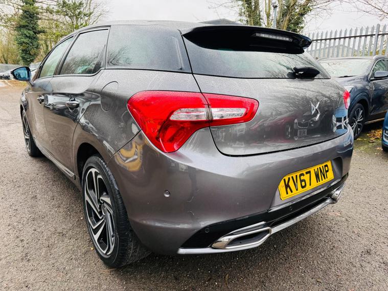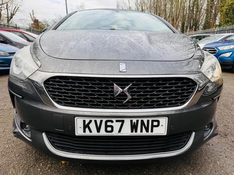 GREY, SERVICE HISTORY, FINANCE AVAILABLE, NAVIGATION SYSTEM, PARKING CAMERA, LEATHER AND HEATED SEATS, PANORAMIC ROOF, ONLY TWO OWNER FROM NEW, SPARE KEYS, PRIVACY GLASS, START/STOP, CRUISE CONTROL, ULEZ COMPLIANTSUPERB DRIVE, VERY ECONOMICAL, ALLOY WHEELS, CLIMATE CONTROL, VERY WELL LOOKED AFTER, VERY CLEAN IN AND OUTThis 2017 DS 5 BlueHDi Prestige offers excellent provenance with its MOT valid until November 2026 and a recent service completed on 2nd September 2025, all supported by a low mileage of just 51, 457 miles for its age. This Euro 6 compliant 2.0L diesel model, presented in the Prestige trim, comes equipped with a suite of advanced features designed for comfort and safety. These include a Blind Spot Monitoring System with assistance, a Reversing Camera with parking assistance, and Dual-Zone Automatic Air Conditioning for personalised climate control.The DS 5 Prestige also boasts a distinctive three-part glass roof with electric sunblinds, creating an open and airy cabin atmosphere. For seamless connectivity, it features Mirror Screen with Mirror Link and Apple CarPlay, allowing easy integration of your smartphone. The generous boot space ensures practicality for all your needs, while its performance is highlighted by a brisk 0-62mph acceleration time of 9.2 seconds, demonstrating a capable driving experience that sets it apart from other vehicles in its class..