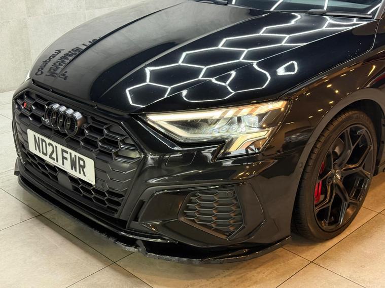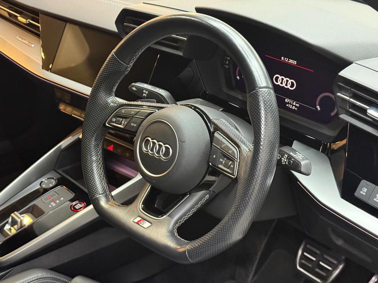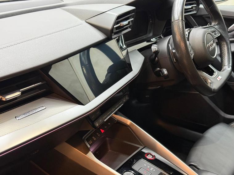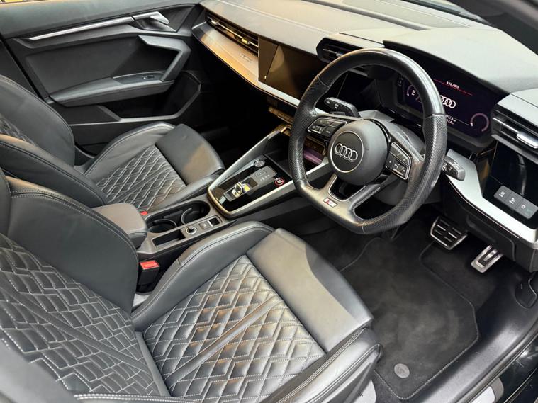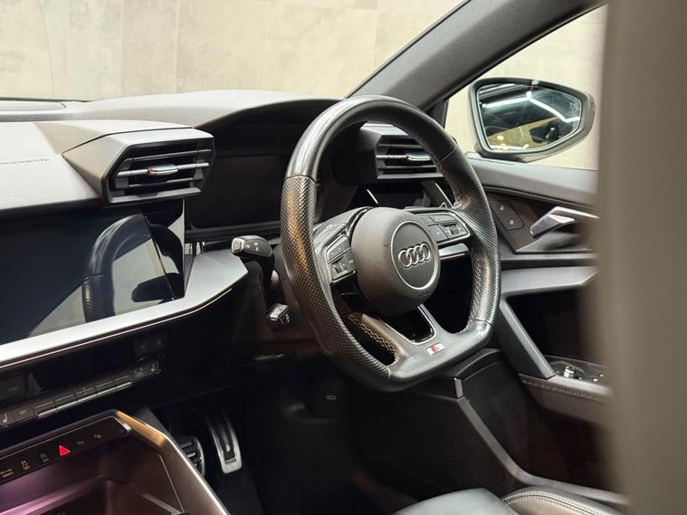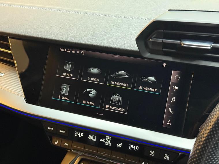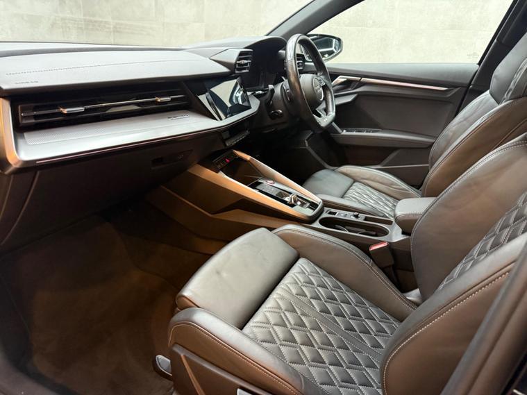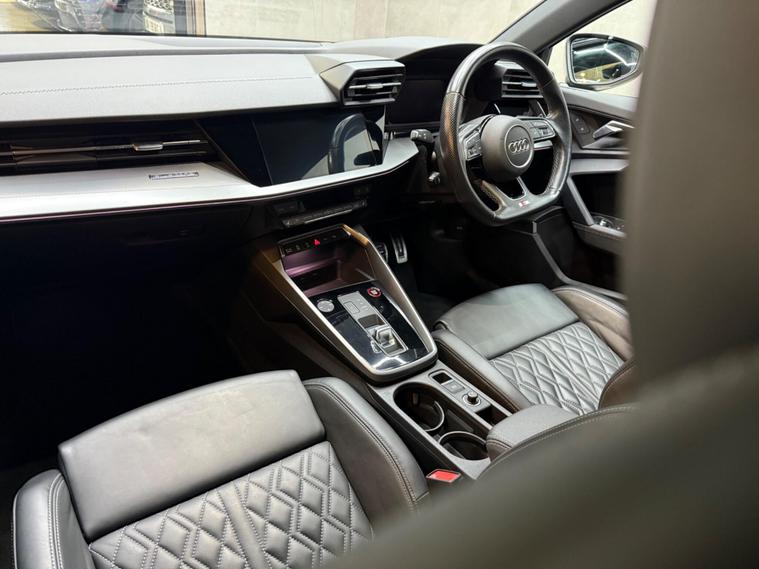 This 2021 Audi S3 TFSI offers an exhilarating driving experience with its impressive 0-62mph acceleration in just 4.8 seconds. Powered by a robust 2.0 litre petrol engine and featuring Audi's renowned four wheel drive system, this Euro 6 compliant model ensures confident handling in all conditions. Inside, you'll find a host of premium features designed for comfort and convenience, including heated front seats and dual zone electronic climate control. The Audi Smartphone Interface seamlessly integrates your device, offering access to Apple CarPlay for effortless connectivity.Further enhancing your journey are the automatic LED headlights with dynamic rear indicators, which activate automatically thanks to the light and rain sensor. This Audi S3 also boasts a surprisingly large boot space, making it practical for everyday use and weekend getaways alike. These carefully selected features, combined with its potent performance, clearly set this Audi S3 apart from other vehicles in its class, offering a superior blend of sportiness, technology, and everyday usability..
