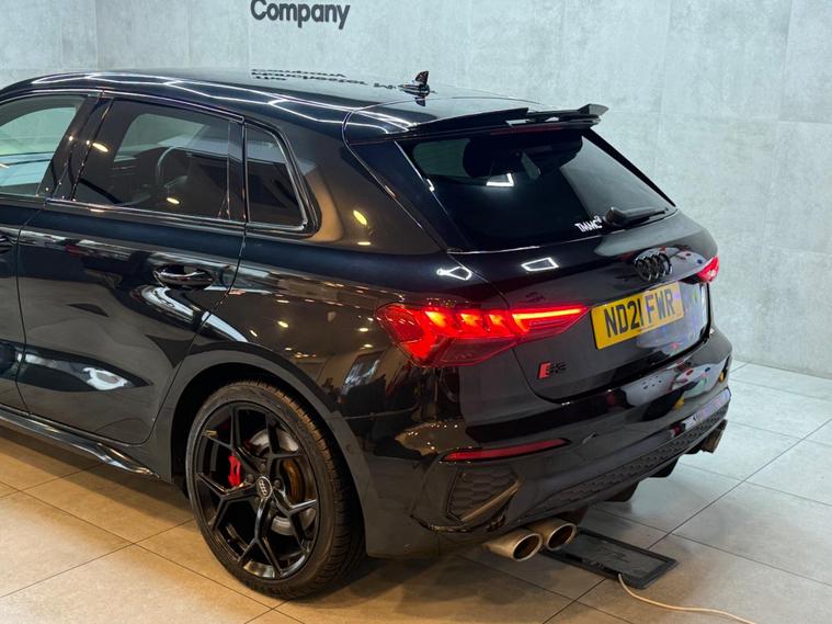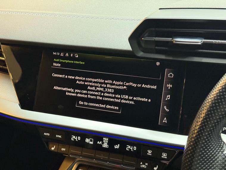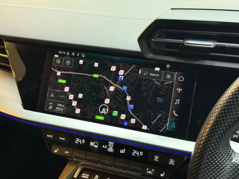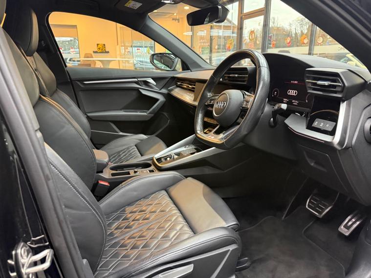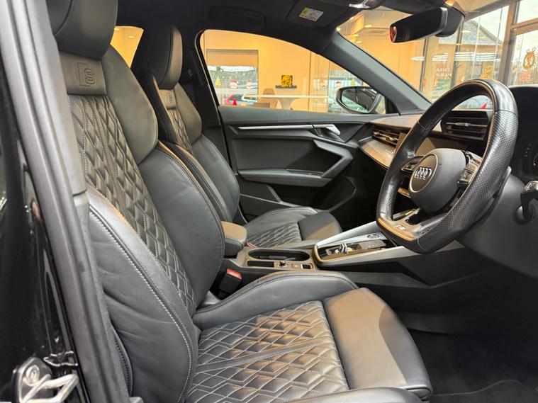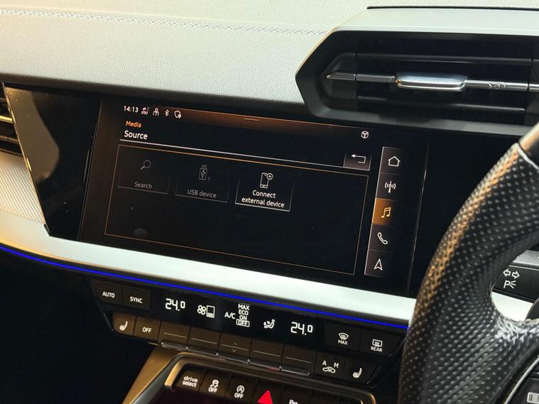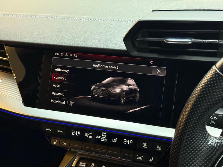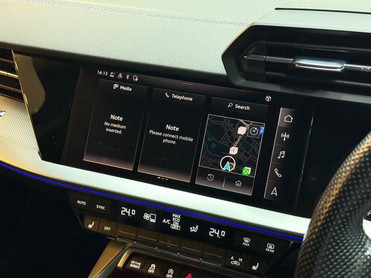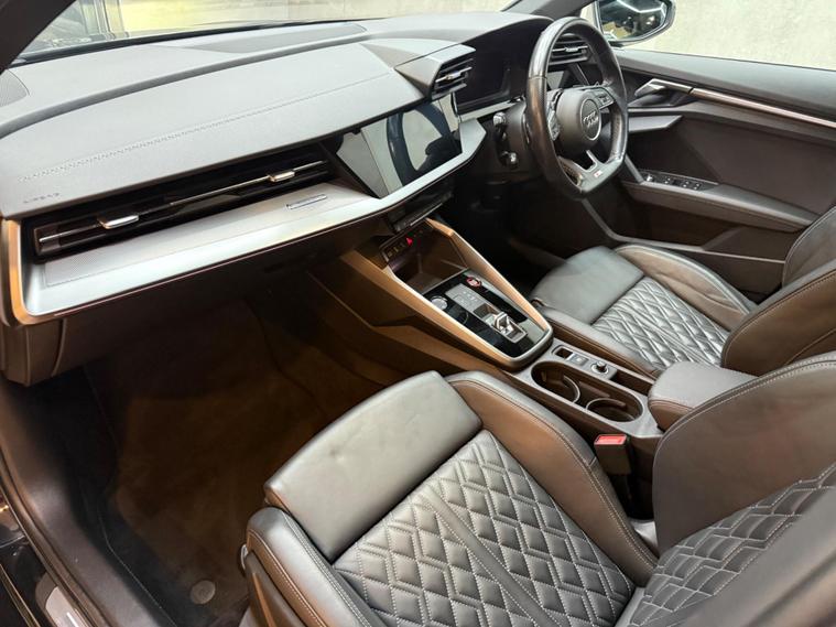 This 2021 Audi S3 TFSI offers an exhilarating driving experience with its impressive 0-62mph acceleration in just 4.8 seconds. Powered by a robust 2.0 litre petrol engine and featuring Audi's renowned four wheel drive system, this Euro 6 compliant model ensures confident handling in all conditions. Inside, you'll find a host of premium features designed for comfort and convenience, including heated front seats and dual zone electronic climate control. The Audi Smartphone Interface seamlessly integrates your device, offering access to Apple CarPlay for effortless connectivity.Further enhancing your journey are the automatic LED headlights with dynamic rear indicators, which activate automatically thanks to the light and rain sensor. This Audi S3 also boasts a surprisingly large boot space, making it practical for everyday use and weekend getaways alike. These carefully selected features, combined with its potent performance, clearly set this Audi S3 apart from other vehicles in its class, offering a superior blend of sportiness, technology, and everyday usability..