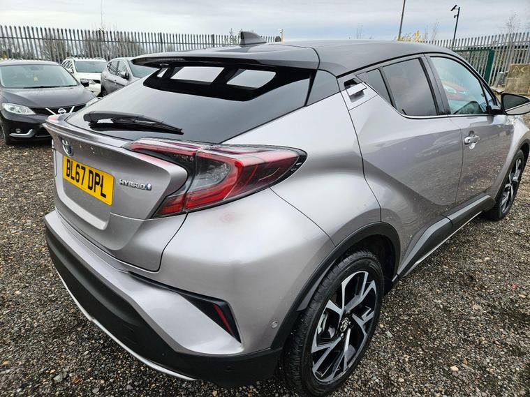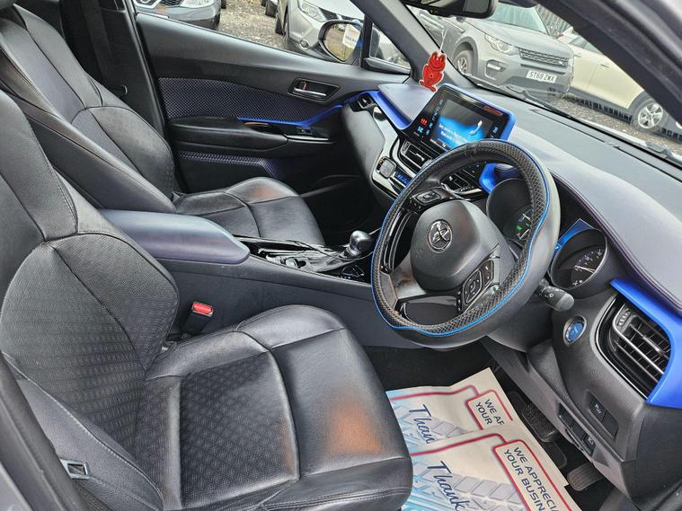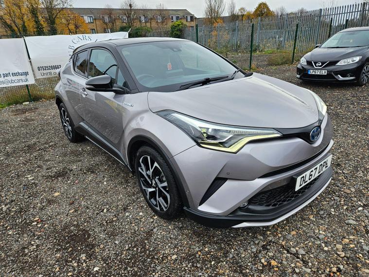 3monthswarranty, full service history, ulez compliant, hpi clear, parking sensors, Bluetooth hands free system, cruise control, heated seats, Keyless start, 3 previous owners, MOT till December 2026, Reverse camera, leather seats, and many more. Free 12months basic aa breakdown cover, free 20miles delivery available and nationwide delivery available for extra cost.In house finance options available.This 2017 Toyota C-HR VVT-h Dynamic is a standout choice with exceptionally low mileage for its age, having covered just 56, 345 miles. This Euro 6 compliant model boasts a 1.8L petrol hybrid engine, offering an impressive fuel economy of 72 mpg. The Dynamic trim level ensures a well equipped experience, featuring a reversing camera and parking sensors, complemented by Intelligent Park Assist for effortless manoeuvring.Further enhancing its appeal, this C-HR includes Toyota Safety Sense, which incorporates adaptive cruise control, and blind spot monitoring for added awareness on the road. Stay connected with Bluetooth connectivity. The low insurance group and low CO2 emissions are significant advantages, indicating that this vehicle is more economical to own and run compared to many others in its class..