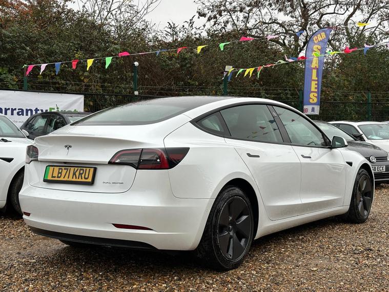 ULTIMATE MOTORS IS PLEASE TO OFFER YOU THIS STUNNING TESLA MODEL 3 (DUAL MOTORS) LONG RANGE AUTO 4DR IN WHITE COLOUR AND 18IN AERO DESIGN ALLOY WHEELS. THIS VEHICLE IS EQUIPPED WITH ADVANCE FEATURES SUCH AS; SATELLITE NAVIGATION SYSTEM, PARKING ASSIST CAMERA, BLUETOOTH CONNECTIVITY FOR PHONE AND MEDIA, DAB-FM/AM RADIO, 2 ZONE CLIMATE CONTROL, AUTOPILOT FUNCTION, ELECTRICALLY ADJUSTABLE HEATED FRONT SEATS, 15IN TOUCHSCREEN WITH ONBOARD MAPS AND NAVIGATION, HEATED STEERING WHEEL, FRONT AND REAR HEATED SEATS, LANE DEPARTURE WARNING SYSTEM, AMBIENT INTERIOR LIGHTING, WI-FI AND LTE INTERNET CONNECTIVITY, LED HEADLIGHTS WITH LED DAYTIME RUNNING LIGHTS, ADAPTIVE CRUISE CONTROL, KEYLESS ENTRY, TYRE PRESSURE WARNING SYSTEM. THIS VEHICLE IS ULEZ EXEMPT. WE ARE OFFERING NATIONWIDE DELIVERY ON ALL VEHICLE (PLEASE GET IN TOUCH DIRECTLY FOR DETAILS). WE CAN ALSO CONDUCT VIRTUAL VIEWINGS AND ACCOMMODATE ANY REQUESTS YOU MAY HAVE. ALL OUR ADVERTISED STOCK IS TEST-DRIVEN, INSPECTED BY OUR MECHANIC TO MAKE SURE OUR CUSTOMERS DRIVE AWAY WITH THE BEST QUALITY CARS. WE CAN PROVIDE A VIDEO WALK AROUND THIS VEHICLE UPON REQUEST.ALL OF OUR VEHICLES ARE SUPPLIED WITH A 3 MONTHS WARRANTY WITH EXTENDED OPTION. 12 MONTHS FREE AA BREAKDOWN COVER. FINANCE AVAILABLE..