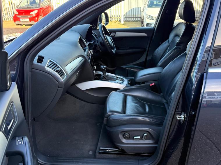 This 2015 Audi Q5 TDI S line Plus offers a refined driving experience with its Euro 6 compliant 2.0L diesel engine and four wheel drive system. Finished in the striking S line Plus trim, this model benefits from the exclusive Audi Exclusive Line package, featuring luxurious Cloudy Grey Black Fine Nappa Leather upholstery. Comfort is further enhanced by electrically adjustable front seats and Deluxe 3-Zone Climate Control, ensuring a pleasant environment for all occupants. Automatic headlights with a light sensor and a Bluetooth interface for mobile telephone preparation add to the convenience and modern appeal of this well appointed Audi.The Q5 TDI S line Plus demonstrates its capability with an impressive 0-60mph acceleration time of just 8.1 seconds, highlighting its responsive performance. This vehicle also boasts a generous boot space, making it a practical choice for families and those who require ample storage. These features collectively position this Audi Q5 as a superior option within its class, offering a blend of performance, comfort, and utility..