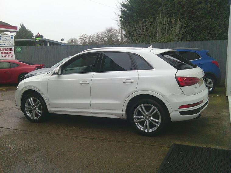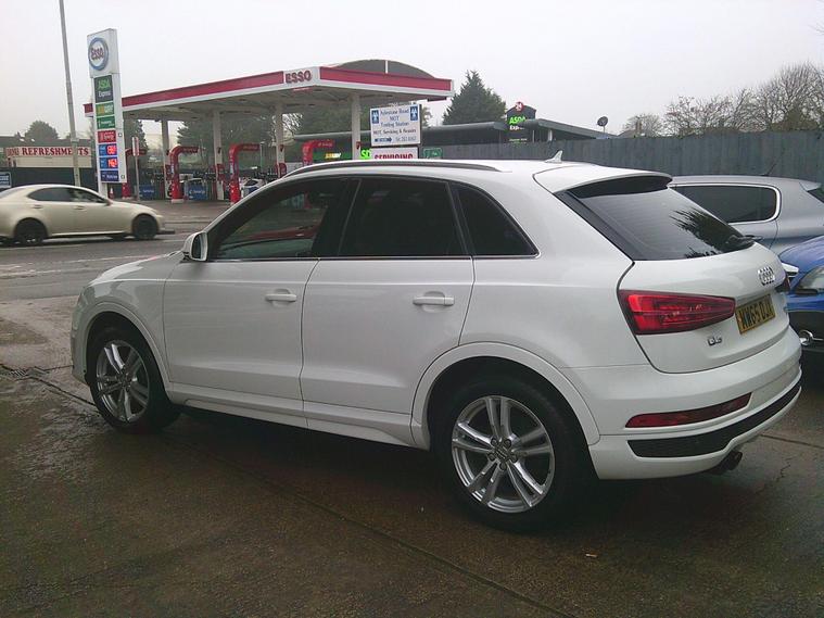 This Audi Q3 TFSI S line from 2015 offers excellent provenance, having been owned by only two previous keepers. This stylish SUV features a 1.4 litre petrol engine and meets Euro 6 emissions standards. Inside, you'll find dual zone electronic climate control for personalised comfort, and a Bluetooth interface for seamless mobile phone connectivity. Parking is made easier with rear parking sensors, and the vehicle is equipped with automatic activation headlights, including all weather LED headlights for enhanced visibility.Experience impressive efficiency with this Q3, boasting a fuel economy of up to 50 miles per gallon, which is better than many similar vehicles. Its low CO2 emissions also contribute to its economical running costs. For those who appreciate performance, this Q3 accelerates from 0 to 60 miles per hour in just 8.9 seconds, demonstrating a strong balance of power and efficiency..