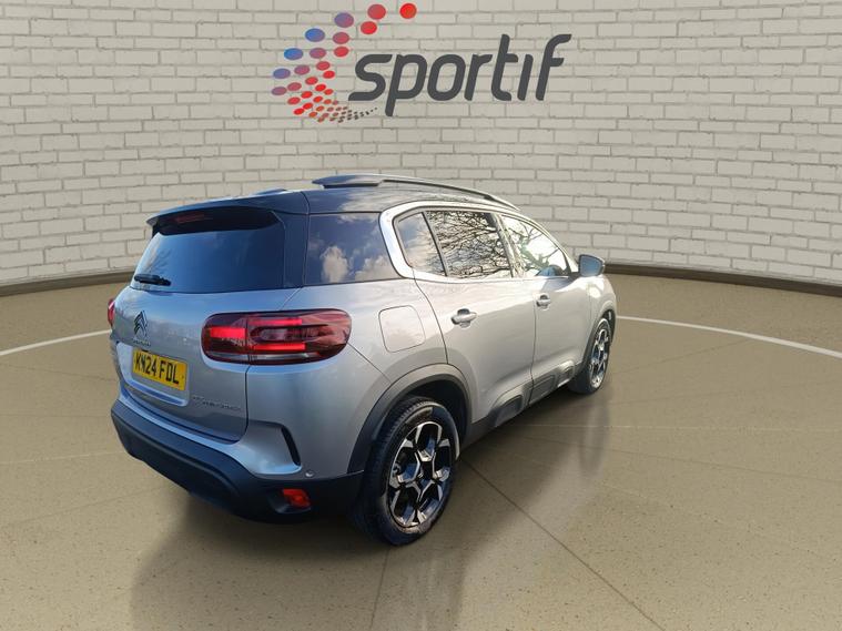 This 2024 Citroen C5 Aircross Shine is a remarkable example, boasting exceptionally low mileage for its age at just 9447 miles, and having had only one owner from new. As a Citroen manufacturer approved vehicle, it offers peace of mind, featuring a 1.2 litre petrol hybrid engine that meets Euro 6 emission standards. The Shine trim level comes equipped with striking LED headlights and daytime running lights, an acoustic laminated windscreen with automatic rain and brightness sensors, and automatic dual zone climate control to ensure comfort in all conditions. For enhanced safety and convenience, it includes the Drive Assist Pack with adaptive cruise control and blind spot assistance, alongside Citroen Connect Play, offering seamless integration with Android Auto and Apple CarPlay.The C5 Aircross Shine stands out with its impressive fuel economy, achieving a highlight of 53 miles per gallon, which is excellent for a vehicle of its type and indicates a more economical driving experience compared to many others. Furthermore, the generous boot space provides ample room for luggage, shopping, or equipment, making it a practical choice for families and individuals alike. This combination of efficiency, practicality, and advanced features makes this 2024 Citroen C5 Aircross a compelling option..