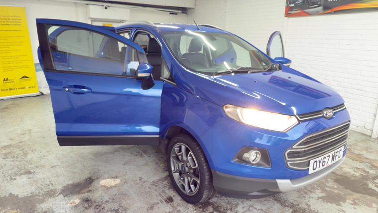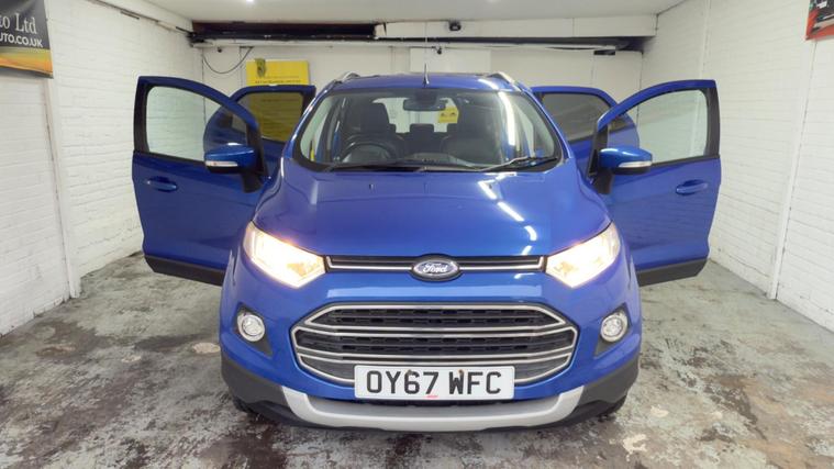 This 2017 Ford EcoSport T Titanium boasts a clear vehicle history check, offering you peace of mind. This stylish SUV is powered by an efficient 1.0L petrol engine, meeting Euro 6 emissions standards. It features automatic halogen headlights with LED signature lights, a Ford Keyfree system for keyless entry and starting, and electronic automatic temperature control for your comfort. The EcoSport also includes the convenient Ford Easy Fuel capless refuelling system and independent front suspension with MacPherson struts for a smooth ride.With an impressive fuel economy of 52 miles per gallon, this EcoSport is designed to be economical. Its low CO2 emissions and low insurance group further highlight its cost effectiveness compared to similar vehicles. This particular model comes with a 3 month warranty and its MOT is valid until November 2026, ensuring it is roadworthy and ready for your adventures.All vehicles are inspected by trained technicians and are history checked. Test drives and part-exchange are available, and you can choose, buy and drive away the same day. Three months mechanical parts and labour warranty included. Third party extended Warranty (up to 36 months) options are available. Free 12 months AA roadside breakdown Assistance. 5 days drive away Insurance available from £44.99 (term & conditions apply) Our cars are HPI cleared. Competitive finance options are available. NO Admin Fee- NO ADMIN fee on finance application made with us. Admin fee may apply on finance application made from third party( please ask for details). All Major cards are accepted. Look our website dealer's website for further information..