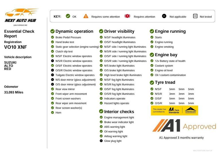 This 2010 Suzuki Alto SZ3 boasts an impressive service history with its last service completed on 10th December 2025 at 33, 093 miles, and it comes with a clear vehicle history check. This particular SZ3 model is equipped with a 1.0L petrol engine and features manual air conditioning for your comfort. With only three previous owners and a 3 month warranty included, this car offers peace of mind.The Suzuki Alto SZ3 is a smart choice for economical motoring, highlighted by its exceptional fuel economy of 64 mpg. This efficiency, combined with its low CO2 emissions and low insurance group rating, means this vehicle is designed to be more affordable to run than many others in its class. A 12 month MOT will be provided upon purchase, further enhancing its value.3 Month Warranty 12 month AA Road side cover includedAA Dealer promise for quality cars and serviceWe guarantee you an absolutely clean title to the car, an outstanding maker may show up on the HPI report however this is commercial unit stocking finance which we have with our suppliers and is different to traditional consumer finance. Your invoice will confirm that this marker will be removed within 48 hours of your purchase.A complete health check is performed to ensure no surprises with the car, any test drive is welcome.At Next Auto Hub we make great effor to ensure that our cars are prepped to a high standard before these are made available for sale.Payment options:Bank Transfer (Preferred)Cash/Credit Card/Debit Card (These methods carry an additional surcharge of 1 dealer's website credit card (Visa/Mastercard and Amex) all carry a surcharge of 2.5%.