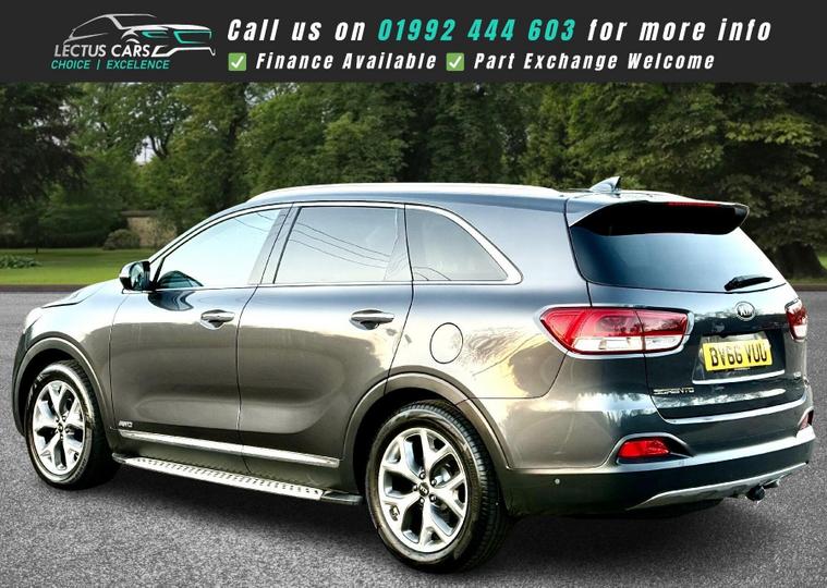 Finished in Titanium Grey Metallic with Striking Grey & Black Leather upholstery this 2016 Kia Sorento CRDi KX-4 boasts a clear vehicle history and has been cherished by just one owner from new. Complimented by a Full-Service history with last being at 122, 192 miles on September 17th 2025.This capable seven-seater SUV is equipped with a powerful 2.2 litre diesel engine and a four-wheel drive system, making it ready for any journey. The KX-4 trim level ensures a well-appointed interior, featuring a heated steering wheel and seats for those colder mornings, and Bluetooth connectivity for seamless music streaming and handsfree calls.Navigating tight spaces is made effortless thanks to the park assist system, complete with front and rear parking sensors and a reversing camera. For longer drives, adaptive cruise control takes the strain out of motorway travel. These thoughtful features, combined with the Sorento's practical seven seat layout and robust four wheel drive capability, position this particular example as an excellent choice for families and adventurers alike. The car has a Tilt and Slide Glass panoramic roof that gives a nice airy feel to the passenger compartment. The software has been updated so you can now have the benefit of Apple Carplay. One of the many safety features is the Lane Departure Warning System which warns you if you deviate from the lane you are traveling in. Smart Power Tailgate makes loading that much easier. There are many more features on this car just check the specification tab. See the video in the advert or use this link: https://youtu.be/d704oZxGd5w?si=AdJm9vB3sbP8Pg4s0% Deposit when financing through us.DELIVERY AVAILABLE. The Car Comes With A 6 Month Premium Nationwide Parts And Labour Warranty Finance Available From 10.9 % Apr All Inspections Welcome AA/RAC Px Welcome Viewing By Appointment Only Please Call John On 01992692105 Or 01992692105.