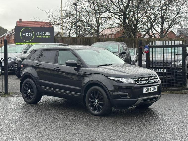 Welcome to HKO Vehicles Lyme Green!We’re delighted to present this stylish and capable Land Rover Range Rover Evoque 2.2 SD4 Pure Tech Auto 4WD, a premium compact SUV offering luxury, comfort, and strong performance. As an AA Approved Dealer, this vehicle includes 12 months free AA Breakdown Cover, full service history, a long MOT, 3 months warranty, and finance options available, giving you total peace of mind. Finished in sleek Black, this 2014 (14 plate) Evoque has covered 91, 000 miles and benefits from sought-after features including automatic transmission, full leather interior, and a desirable panoramic roof. A superb choice for those seeking a refined and stylish SUV with proven Land Rover capability.Manufacturer Specification HighlightsEngine: 2.2 SD4 Diesel (190ps)Transmission: AutomaticDrive: 4WDEmissions Standard: Euro 5 (s/s)Body Style: 5-Door SUVColour: BlackRegistration: SW14 CDNMileage: 91, 000 milesKey FeaturesPanoramic Glass Roof – bright, premium cabin atmosphereFull Leather Interior – luxury and comfort throughoutAutomatic Transmission – smooth and effortless drivingPure Tech Specification – upgraded infotainment and convenience featuresTouchscreen Navigation SystemBluetooth Connectivity – hands-free calls & audio streamingHeated Front SeatsCruise ControlClimate Control / Air ConditioningFront & Rear Parking SensorsElectric Heated MirrorsAlloy WheelsISOFIX Child Seat Mounts4WD Capability – confident performance in all weather conditionsThis Range Rover Evoque Pure Tech offers the ideal blend of premium styling, practicality, and driving comfort. With its pan roof, full leather, automatic gearbox, and excellent overall condition, it stands out as a great-value luxury SUV.Contact HKO Vehicles Lyme Green today to arrange a viewing or test drive—this well-presented Evoque is ready to drive away!.