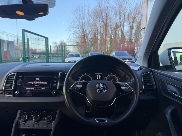 This 2020 Skoda Karoq TSI SE is a well equipped and practical choice for everyday driving. It features a 1.0 litre petrol engine and meets Euro 6 emissions standards. Inside, you'll find dual zone climate control for personalised comfort, rear parking sensors to aid manoeuvring, and automatic headlights that adjust to changing light conditions. Enjoy your favourite stations with DAB digital radio and stay connected on the go with Bluetooth functionality. The light and rain sensor system also includes an auto dimming rear view mirror, further enhancing convenience.FULL SERVICE HISTORYThis Karoq offers excellent value, boasting a favourable low insurance group. You can expect impressive fuel economy, achieving up to 46 miles per gallon, which is better than many vehicles in its class. Its large boot space provides ample room for shopping, luggage, or equipment, making it a versatile option for families and individuals alike. Furthermore, its low CO2 emissions contribute to a more environmentally conscious drive.VIEWING BY APPOINTMENT ONLY PX WELCOME FINANCE AVAILABLE.