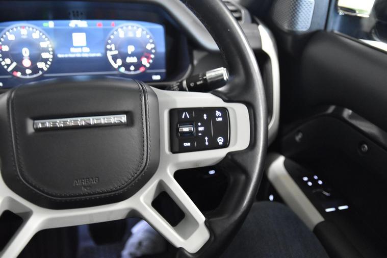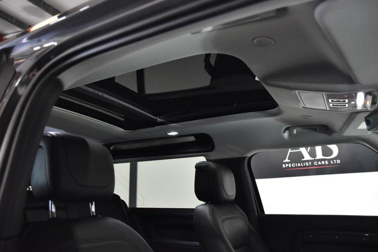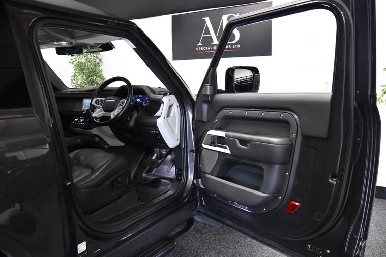 We are pleased to offer this stunning Land Rover Defender 90 finished in metallic Carpathian grey with Ebony leather interior. This car has covered 67, 000 miles from new complete with full service history. The spec of this car includes 22 inch wheels, sliding panoramic roof, 360 degree camera system, heated steering wheel, interactive drivers display, privacy glass, detachable tow bar, adaptive LED headlights, auto lights and wipers, apple car play, 360 degree parking sensors, fully electric front seats with memory function, heated and cooled front seats, Urban design roof spoiler, spare wheel with cover and much more..
