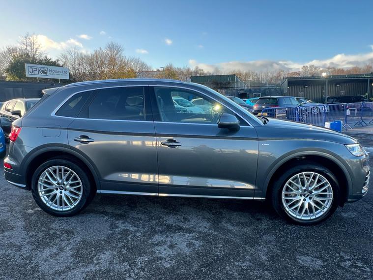Immaculate condition throughout with a very high specification; Navigation, panoramic glass opening roof, media with apple car play, heated leather & suede upholstery, upgraded 20'' alloys and much more. With an exceptionally low mileage for its age, this 2019 Audi Q5 TDI S line presents a superb ownership proposition. This four wheel drive model boasts a 2.0 litre diesel engine and meets Euro 6 emissions standards. Its provenance is further enhanced by a full dealership service history, with the last service completed on 10th June 2025 at 41, 957 miles, and an MOT valid until June 2026. This single owner vehicle has covered just 45, 000 miles and includes the desirable Comfort and Sound Package, featuring keyless entry, a luxury branded sound system, and rear parking assistance with a camera.Further enhancing the driving experience are the Technology Package with wireless phone charging, a panoramic glass sunroof with opening function, and heated front and outer rear seats. The electrically adjustable front seats include a memory function for the driver, ensuring personalised comfort. The Q5 also offers generous boot space, making it practical for everyday use and longer journeys. Its performance is equally impressive, with an acceleration of 0-62mph in just 8.1 seconds, demonstrating a blend of efficiency and dynamic capability that sets it apart..