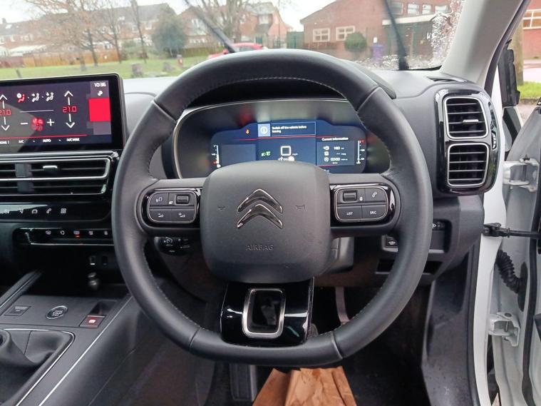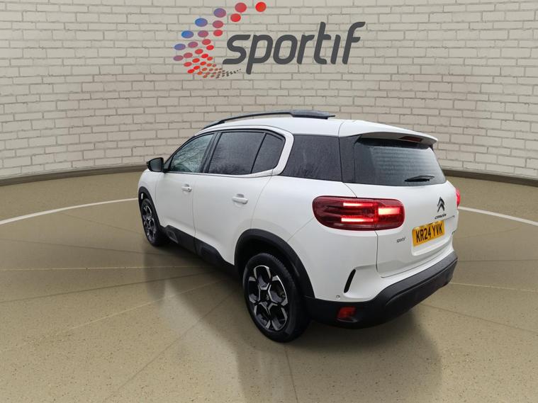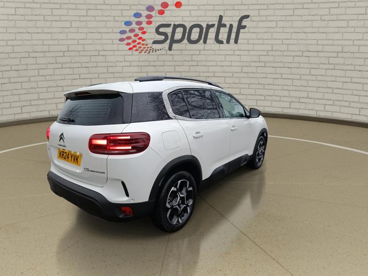 This 2024 Citroen C5 Aircross MAX is a Citroen manufacturer approved vehicle with only one owner and a full service history, offering peace of mind. This 1.2 litre petrol model, compliant with Euro 6 emissions standards, features an Urban Black Interior Ambience for a refined cabin experience. It also boasts automatic headlights with welcome and goodbye lighting, automatic dual zone climate control, and an acoustic laminated windscreen with rain and brightness sensors. Connectivity is seamless with Citroen Connect Play, supporting both Android Auto and Apple CarPlay.The C5 Aircross MAX stands out with its impressive fuel economy, achieving up to 49 miles per gallon, and its low CO2 emissions, making it a more economical choice compared to similar vehicles. You'll also appreciate the generous boot space, perfect for all your needs. This vehicle comes with a 12 month warranty and a 12 month MOT provided on purchase, ensuring your continued confidence on the road..