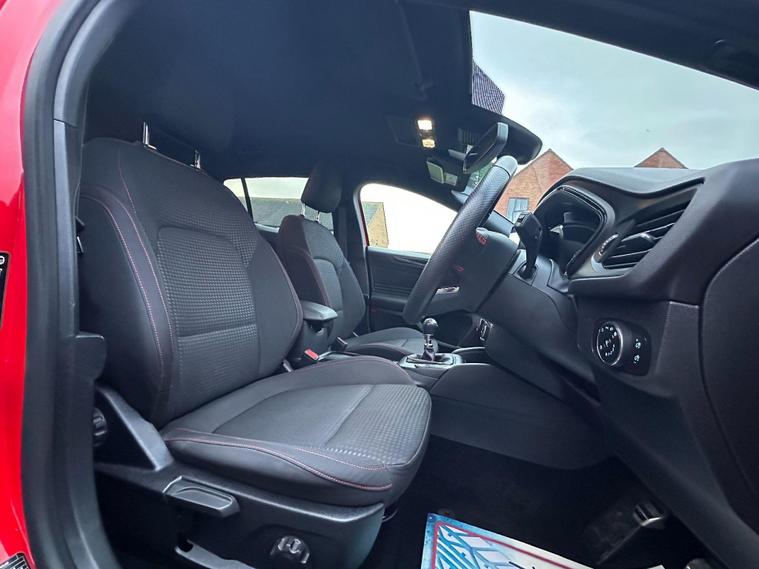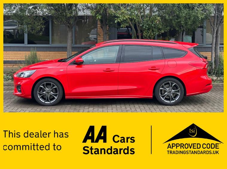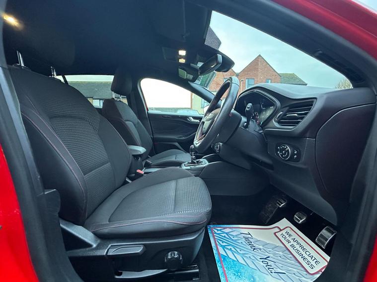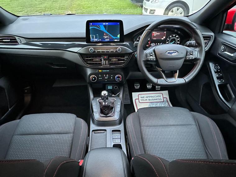 Here we have a well maintained and looked after Ford Focus in fantastic condition throughout with 1 former keeper registered, Service history includes Service 1 - 19, 418, Service 2 - 47, 602, Service 3 - 67, 574, Service 4 - 88, 427, Service 5 - 101, 494, Service 6 - 110, 950, This 2021 Ford Focus ST-Line Edition offers an exceptional blend of style and practicality. Powered by a 1.0 litre petrol/hybrid engine, this Euro 6 compliant model is designed for efficiency and performance. Key features include automatic headlights, manual air conditioning for comfortable journeys, and the convenient Ford Key Free system for keyless entry and start. Parking is made easier with front and rear parking sensors, and you can keep your devices powered up with wireless charging. MOT expires 11/06/2026 with no advisories, The Focus ST-Line Edition stands out with its impressive fuel economy, achieving up to 54 miles per gallon, which indicates it is more economical than many similar vehicles. Its low CO2 emissions also highlight its environmental consideration. Furthermore, this model boasts a large boot space, offering excellent versatility for carrying luggage or shopping, making it a practical choice for everyday use and longer trips..