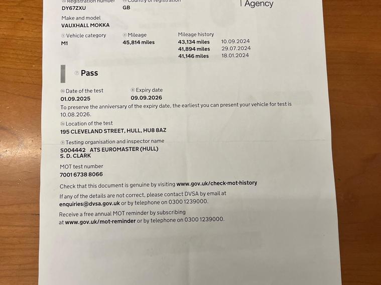 WE ARE VERY PLEASED TO OFFER YOU THIS EXCELLENT VAUXHALL MOKKA X 1.4I TURBO ELITE EURO 6 5 DOOR PETROL, THE CAR DRIVES FAULTLESSLY AND IS IN SUPERB CONDITION INSIDE AND OUT, AS YOU WILL SEE BY THE PICTURES, BEARING IN MIND THE CAR HAS JUST ARRIVED AND NOT BEEN VALETED YET, THE CAR HAS BEEN FRESHLY SERVICED AND HAS A FULL SERVICE HISTORY AS WELL ( 6 SERVICES ) THE CAR HAS AN MOT UNTIL THE 9TH OF SEPTEMBER 2026 WITH NO ADVISORY NOTICES, THERE ARE 2 X REMOTE KEYS PROVIDED ALONG WITH 6 MONTHS AA PARTS AND LABOUR WARRANTY & 12 MONTHS AA BREAKDOWN COVER AS WELL........PLEASE FEEL FREE TO RESERVE FOR £100, THIS IS FULLY REFUNDABLE IF YOU ARE NOT 100% HAPPY WITH THE CAR ONCE YOU HAVE SEEN AND DRIVEN IT..