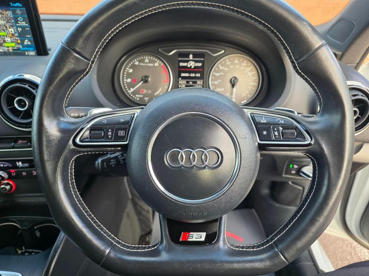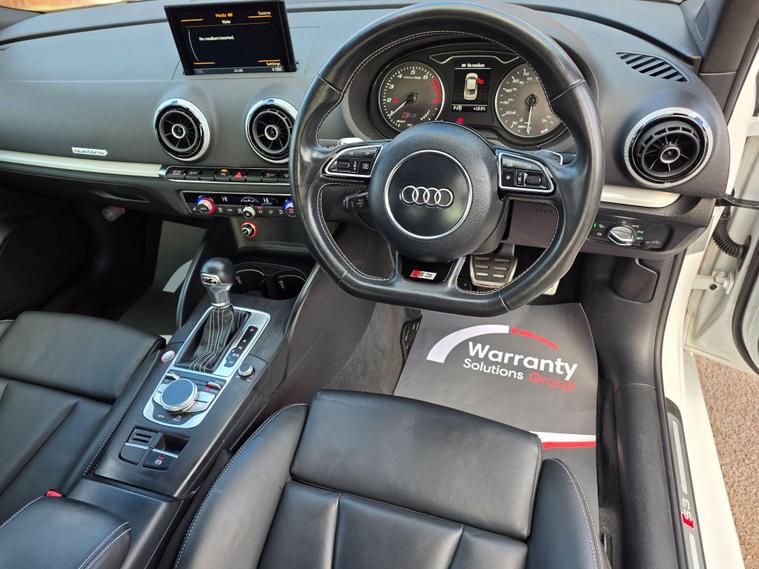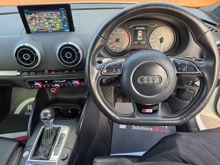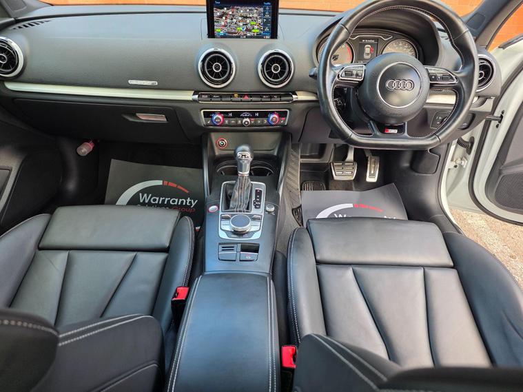 We are proud to present for sale this stunning high specification AUDI S3 Quattro DSG finished In Metalic glacier white. The Audi S3 is a four-wheel-drive hot saloon, providing high performance along with excellent handling and comfort . This vehicle comes with Adaptive cruise control, Xenon lights, Leather interior, 2 Keys, Front & rear parking aid, Climate control, Reversing camera, SAT NAV, Peddle shift, Led day lights, Bluetooth, LED lights, New service, 18'' alloys, Excellent condition, E/Folding mirrors, Climate, 12 MONTHS PARTS AND LABOUR WARRANTY INCLUDED, ALL MAJOR CREDIT/DEBIT CARDS ARE ACCEPTED, PART EXCHANGE WELCOME, FINANCE AVAILABLE.