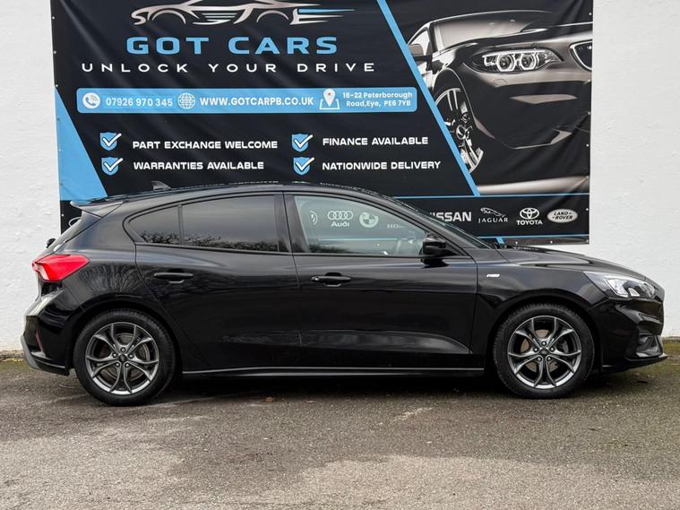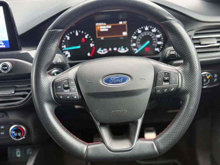 This 2020 Ford Focus ST Line is presented with a clear vehicle history, offering you peace of mind. This popular model features a 1.5 litre diesel engine, meeting Euro 6 emissions standards. Inside, you'll find a Ford SYNC3 DAB radio complete with a floating 6.5 inch touchscreen that supports both Android Auto and Apple CarPlay, alongside manual air conditioning. Automatic headlights are also included, ensuring visibility is always optimised.The Ford Focus ST Line excels with its impressive fuel economy, achieving a remarkable 81 miles per gallon, which is significantly better than many other vehicles in its class. This efficiency is further complemented by low CO2 emissions, making it an environmentally conscious choice. You'll also appreciate the generous boot space, perfect for luggage or shopping. For those who enjoy a responsive drive, this Focus ST Line accelerates from 0 to 62 miles per hour in just 10.0 seconds..